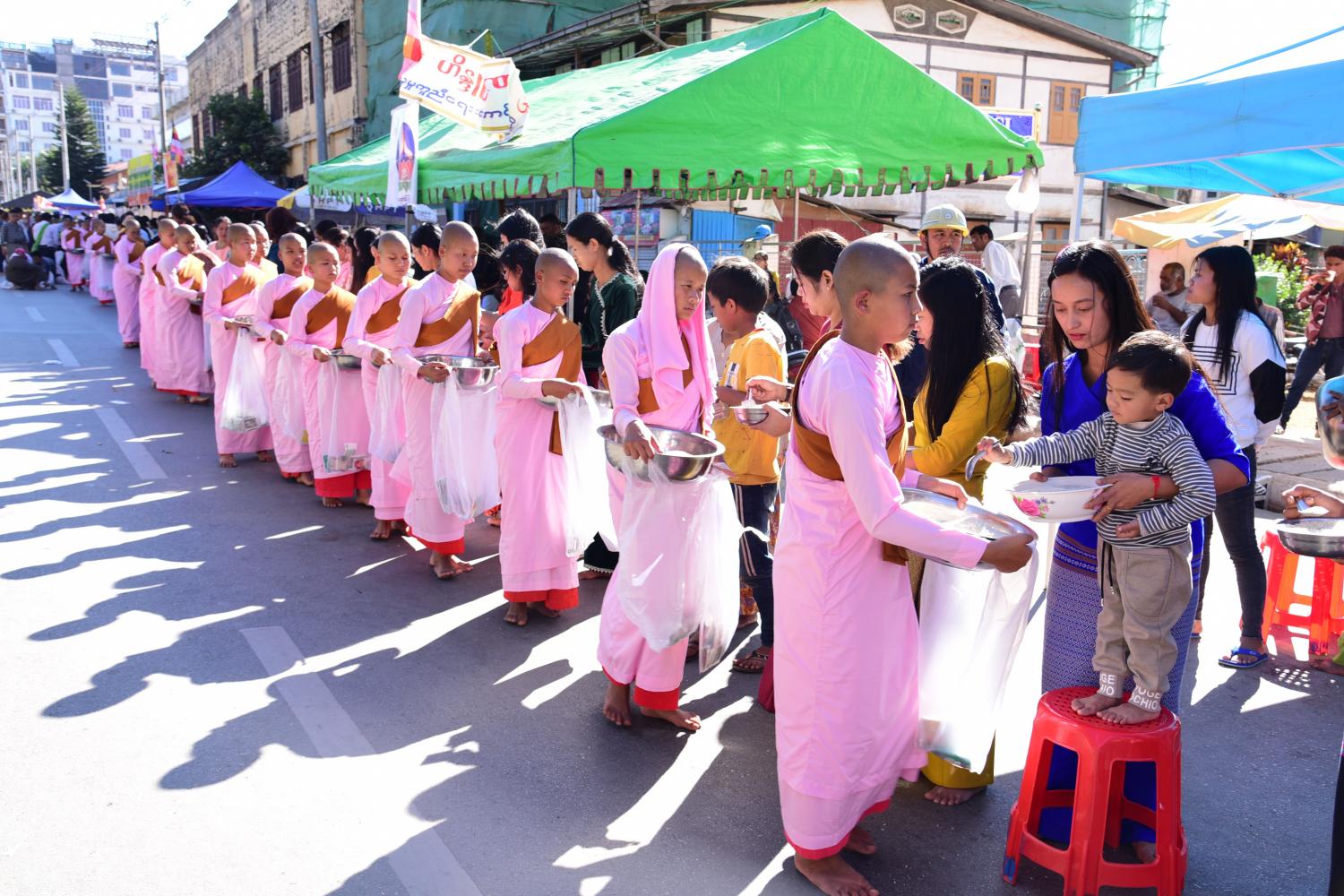 ရှမ်းပြည်နယ်အစိုးရအဖွဲ့က ကြီးမှူးကျင်းပသော (၅၁)နှစ်မြောက် မြို့လုံးကျွတ် ဆွမ်းဆန်စိမ်း လောင်းလှူပွဲ ကို ယမန်နေ့ မွန်းတည့်(၁၂) နာရီက တောင်ကြီးမြို့၊ တောင်ကျောင်းကြီး ပထမစာသင်တိုက်မှ သံဃာတော်များ စတင်ကြွချီ၍ ဗိုလ်ချုပ်အောင်ဆန်းလမ်းမအတိုင်း မူလမင်းကွန်း ကျောင်းတိုက်အထိ ဆွမ်းဆန်စိမ်း လောင်းလှူခံကြသည်။