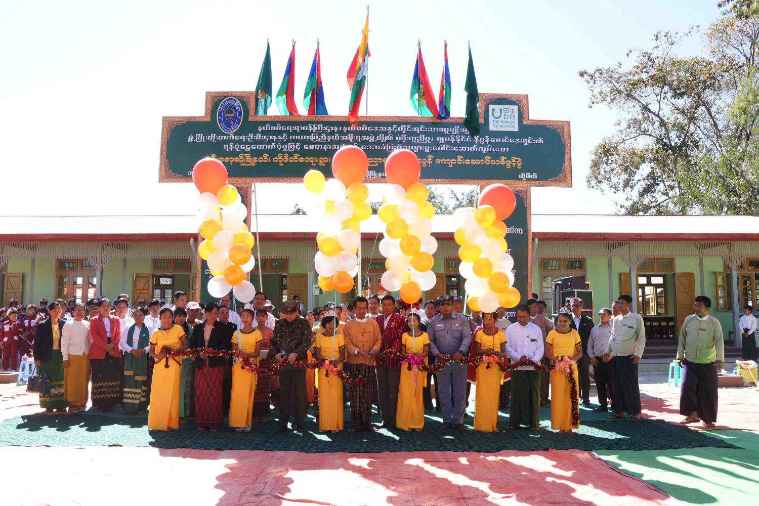 ထို့နောက် ကျောင်းဆောင်သစ်အား ပြည်နယ်ဝန်ကြီးချုပ် ဦးအယ်လ်ဖောင်းရှို၊ လုံခြုံရေးနှင့် နယ်စပ် ရေးရာဝန်ကြီး ဗိုလ်မှူးကြီး မြင့်ဝေ၊ နိပွန်ဖောင်ဒေးရှင်း(စေတနာ)အဖွဲ့မှ စီမံကိန်းဒါရိုက်တာ၊ ပြည်နယ် ဖွံ့ဖြိုးမှုကြီးကြပ်ရေးရုံးမှ ညွှန်ကြားရေးမှူးနှင့် ပြည်နယ်ပညာရေးမှူးတို့က ဖဲကြိုးဖြတ် ဖွင့်လှစ်ပေးပြီး ကျောင်းဆောင်သစ်ဖွင့်ပွဲ အထိမ်းအမှတ်အဖြစ် အရိပ်ရ သစ်ပင်များ စိုက်ပျိုးကာ ကျောင်းဆောင်သစ်အတွင်း လှည့်လည်ကြည့်ရှုစစ်ဆေးခဲ့ကြောင်း သိရသည်။