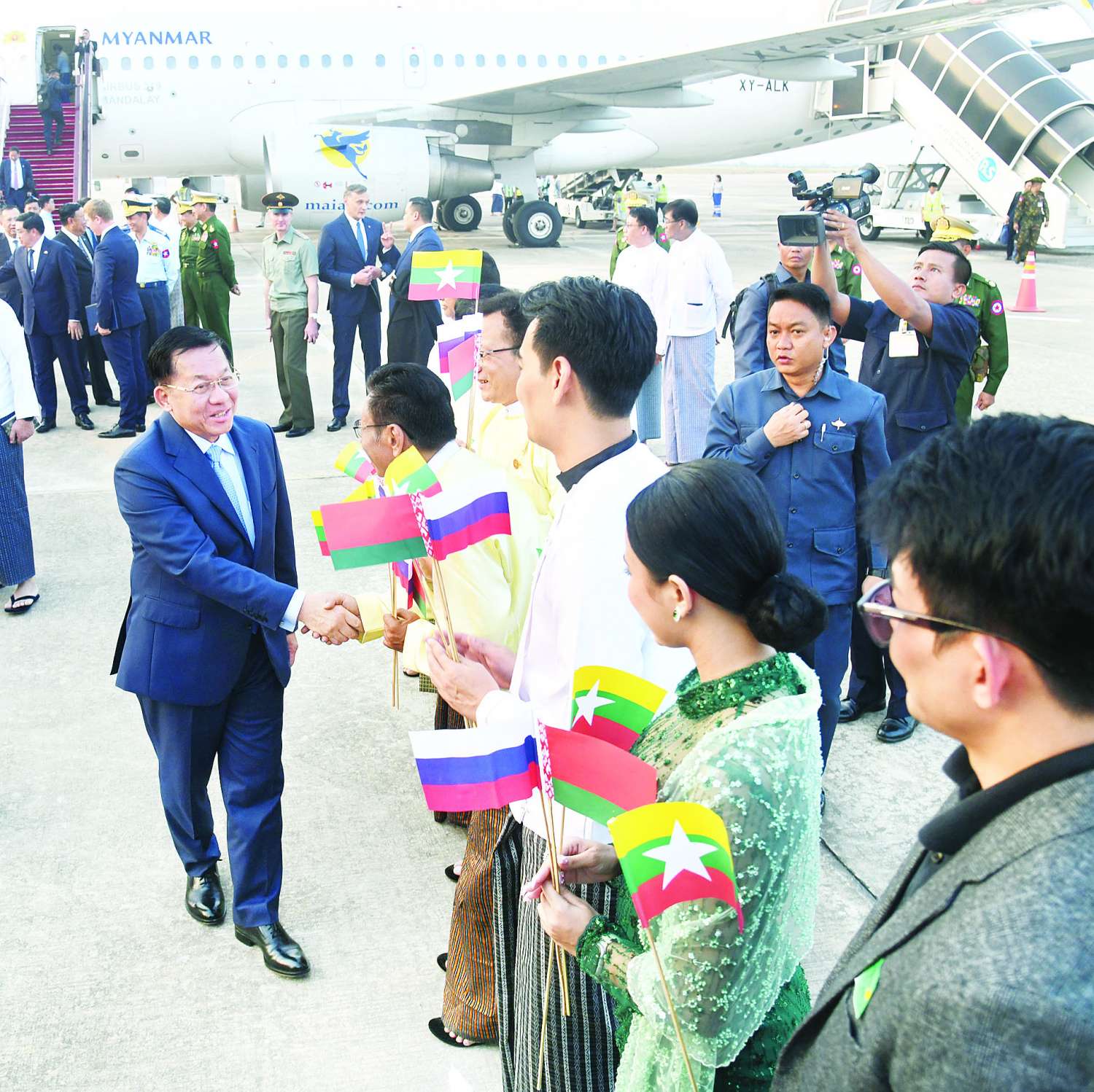 နိုင်ငံတော်စီမံအုပ်ချုပ်ရေးကောင်စီဥက္ကဋ္ဌ နိုင်ငံတော်ဝန်ကြီးချုပ်သည် ရုရှားဖက်ဒရေးရှင်းနိုင်ငံနှင့် ဘယ်လာရုစ်နိုင်ငံသို့ ချစ်ကြည်ရေးခရီး သွားရောက်နေစဉ်အတွင်း မတ် ၄ ရက်တွင် ရုရှားဖက်ဒရေးရှင်းနိုင်ငံသမ္မတ H.E. Vladimir Vladimirovich Putin နှင့် တွေ့ဆုံဆွေးနွေးခြင်းအပါအဝင်၊ လွှတ်တော်ဥက္ကဋ္ဌများ၊ ရုရှားဖက်ဒရေးရှင်းနိုင်ငံ အစိုးရအဖွဲ့တာဝန်ရှိသူများနှင့် ကဏ္ဍအလိုက် တွေ့ဆုံဆွေးနွေးမှုများကို ဆောင်ရွက်ခြင်း၊ မြန်မာ-ရုရှားစီးပွားရေးဖိုရမ်များသို့ တက်ရောက်ခြင်းများကို ဆောင်ရွက်ခြင်းတို့အပြင် စိန့်ပီတာစဘတ်နှင့် နိုဗိုစီဗစ်မြို့တို့တွင် မြန်မာကောင်စစ်ဝန်ချုပ်ရုံး ဖွင့်လှစ်ခြင်းအခမ်းအနားများကို တက်ရောက်ဖွင့်လှစ်ပေးခြင်းတို့ကို ဆောင်ရွက်ခဲ့သည်။ မြန်မာအဆင့်မြင့်ချစ်ကြည်ရေးကိုယ်စားလှယ်အဖွဲ့သည် ရုရှားနိုင်ငံ ခရီးစဉ်အတွင်း မြန်မာ-ရုရှား နှစ်နိုင်ငံအစိုးရ နှစ်ရပ်အကြား သဘောတူညီချက်များ၊ စီးပွားရေး ပူးပေါင်းဆောင်ရွက်ရေးဆိုင်ရာနားလည်မှုစာချွန်လွှာများကို လက်မှတ်ရေးထိုးနိုင်ခဲ့ပြီး နှစ်နိုင်ငံ ချစ်ကြည်ရင်းနှီးမှုနှင့် ပူးပေါင်းဆောင်ရွက်မှု မြှင့်တင်ရေးလုပ်ငန်းများကို ဆောင်ရွက်နိုင်ခဲ့သည်။