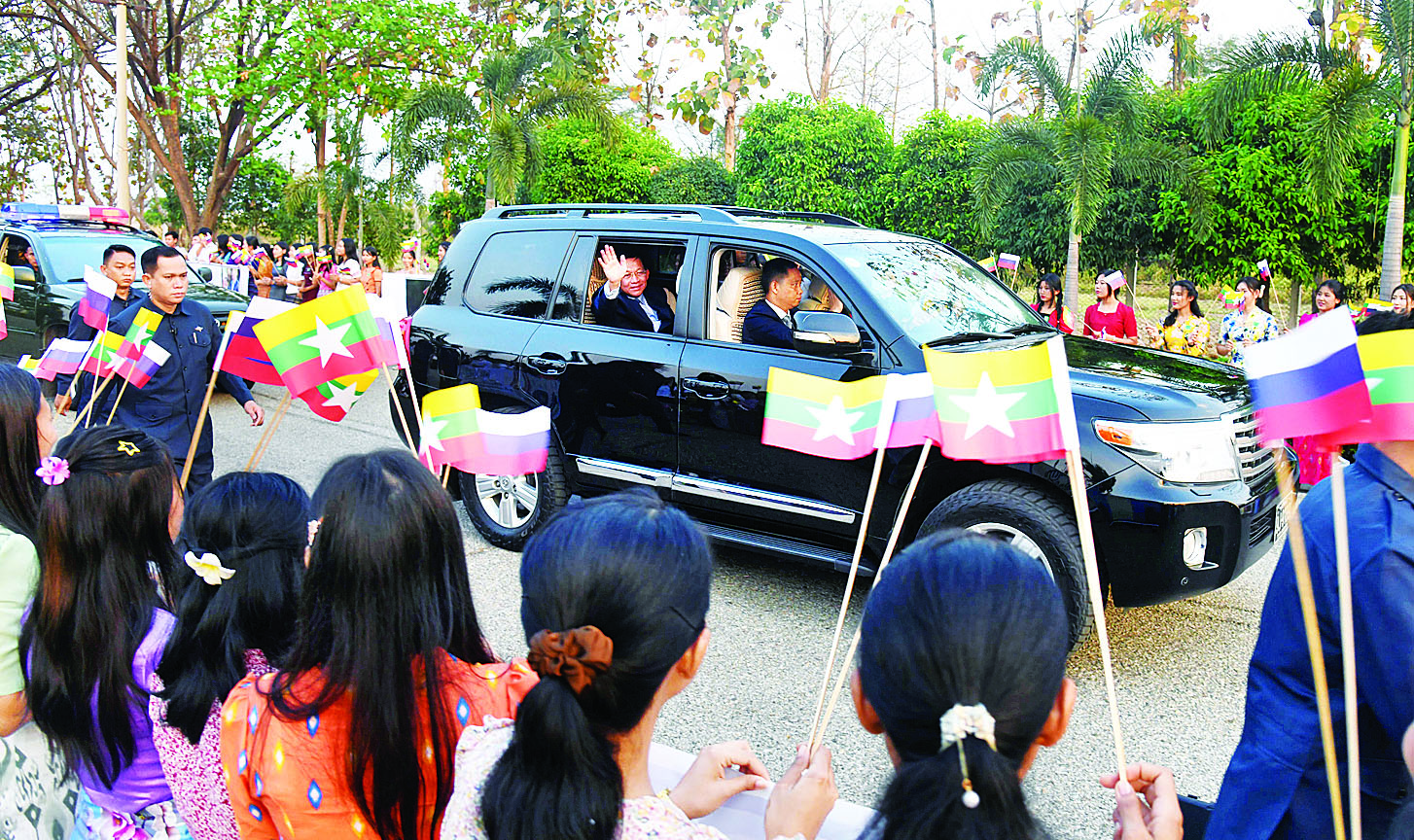 ထို့ပြင် နိုင်ငံတော်စီမံအုပ်ချုပ်ရေးကောင်စီဥက္ကဋ္ဌ နိုင်ငံတော်ဝန်ကြီးချုပ် ဦးဆောင်သည့် မြန်မာချစ်ကြည်ရေးကိုယ်စားလှယ်အဖွဲ့သည် နေပြည်တော်မှ ရုရှားဖက်ဒရေးရှင်းနိုင်ငံ နိုဗိုစီဗစ်မြို့၊ မော်စကိုမြို့၊ စိန့်ပီတာစဘတ်မြို့၊ ဆာမားရားမြို့နှင့် ဘယ်လာရုစ်သမ္မတနိုင်ငံ မင့်စ်မြို့များသို့ သွားရောက်ခဲ့ပြီး မိမိတို့မြန်မာနိုင်ငံနှင့် ရာသီဥတုအနေအထားကွာဟချက်အရ အပူချိန်အနုတ် ၂ မှ အနုတ် ၁၂ ဒီဂရီ စင်တီဂရိတ် (အေးခဲသော) အနေအထားအထိရှိသည့် ရုရှား ဖက်ဒရေးရှင်းနိုင်ငံနှင့် ဘယ်လာရုစ်သမ္မတနိုင်ငံတို့သို့ အသွားအပြန် မိုင်ပေါင်းတစ်သောင်းကျော်ခန့်အထိ သွားရောက်၍ နိုင်ငံတော်အကျိုးစီးပွားကို တစိုက်မတ်မတ် ဦးတည်ပြီး ခရီးစဉ်အတွင်း နေ့မအား ညမနားဖြင့် နိုင်ငံများအကြား စိုက်ပျိုးရေးကဏ္ဍ၊ စီးပွားရေးကဏ္ဍ၊ ကုန်သွယ်ရေးကဏ္ဍ၊ ပညာသင်ကြားမှု မြှင့်တင်ရေးဆိုင်ရာကိစ္စ၊ ခရီးသွားကဏ္ဍများ တိုးမြှင့်ရေးဆိုင်ရာကိစ္စများတွင် ပြည်သူအချင်းချင်း၊ လုပ်ငန်းရှင်များအချင်းချင်း ပူးပေါင်းဆောင်ရွက်နိုင်မည့်အခွင့်အလမ်းများ ပေါ်ပေါက်လာစေရေးအတွက် ကြိုးပမ်းအားထုတ်ဆောင်ရွက်ခဲ့ကြသည့် နိုင်ငံတော် စီမံအုပ်ချုပ်ရေးကောင်စီဥက္ကဋ္ဌ နိုင်ငံတော်ဝန်ကြီးချုပ် ဦးဆောင်သည့် မြန်မာအဆင့်မြင့်ကိုယ်စားလှယ်အဖွဲ့အား ဂုဏ်ပြုကြိုဆိုသောအားဖြင့် တိုင်းရင်းသား၊ တိုင်းရင်းသူ သားငယ်၊ သမီးငယ်လေးများ၊ ဘင်ခရာ၊ ပန်းဖွားအကအဖွဲ့များ၊ ရိုးရာအကအဖွဲ့များ၊ အနုပညာရှင်များ၊ ဒေသခံပြည်သူများက လေဆိပ်တွင် အသင့်စောင့်ကြို၍ လေယာဉ်အဆင်းမှ VIP ဆောင်အထိလည်းကောင်း၊ တပ်မတော်လေဆိပ်မှ အဝိုင်းပတ်နေရာအထိလည်းကောင်း “ရုရှား-မြန်မာ နှစ်နိုင်ငံအကြား ချစ်ကြည်ရင်းနှီးမှု အဓွန့်ရှည်ပါစေ၊ ရုရှား-မြန်မာ နှစ်နိုင်ငံအကြား ဘက်စုံမဟာဗျူဟာမြောက် ပူးပေါင်းဆောင်ရွက်ရေးကဏ္ဍအလိုက် တိုးမြှင့်ဆောင်ရွက်နိုင်ပါစေ၊ ရုရှား-မြန်မာ နှစ်နိုင်ငံဆက်ဆံရေး ပိုမိုတိုးတက်အောင် ဆောင်ရွက်ခဲ့သည့် နစကဥက္ကဋ္ဌ နိုင်ငံတော်ဝန်ကြီးချုပ် ဗိုလ်ချုပ်မှူးကြီး မင်းအောင်လှိုင်အား လှိုက်လှဲစွာ ကြိုဆိုပါသည်၊ ရုရှားမြန်မာ ချစ်ကြည်စွာ တွဲလက်မြဲပါစေ၊ မြန်မာ-ရုရှားပူးပေါင်းအား မုချအောင်မြင်ပါစေ၊ ဘယ်လာရုစ်- မြန်မာချစ်ကြည်ရေး အဓွန့်ရှည်တည်တံ့ပါစေ၊ မြန်မာနိုင်ငံ ဘက်စုံဖွံ့ဖြိုးတိုးတက်ရေးအတွက် ကြိုးပမ်းဆောင်ရွက်ခဲ့သော ဗိုလ်ချုပ်မှူးကြီး မင်းအောင်လှိုင်အား လှိုက်လှဲစွာ ကြိုဆိုပါ၏၊ ရုရှား-မြန်မာ ချစ်ကြည်ရေးကို ခိုင်မြဲစေသော နိုင်ငံတော်ဝန်ကြီးချုပ်နှင့် အဖွဲ့ဝင်များအား လှိုက်လှဲစွာ ကြိုဆိုပါ၏” ဟူသော စာတန်းများပါရှိသည့် ဗွီနိုင်း