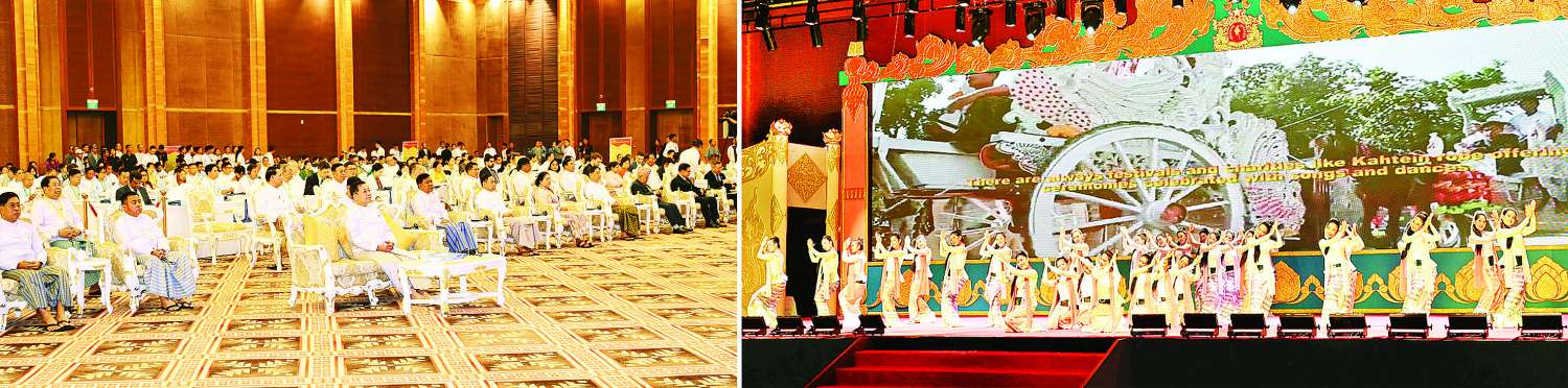 ဦးစွာ ပြည်ပပညာရှင်များအား တစ်ဦးချင်း မိတ်ဆက်ပေးပြီး သာသနာရေးနှင့်ယဉ်ကျေးမှုဝန်ကြီးဌာန အနုပညာဦးစီးဌာနမှ အနုပညာရှင်များက “လှသောချစ်သော မြန်မာ” သီချင်းဖြင့် ကပြဖျော်ဖြေပြီး အခမ်းအနားကို စတင်ဖွင့်လှစ်သည်။