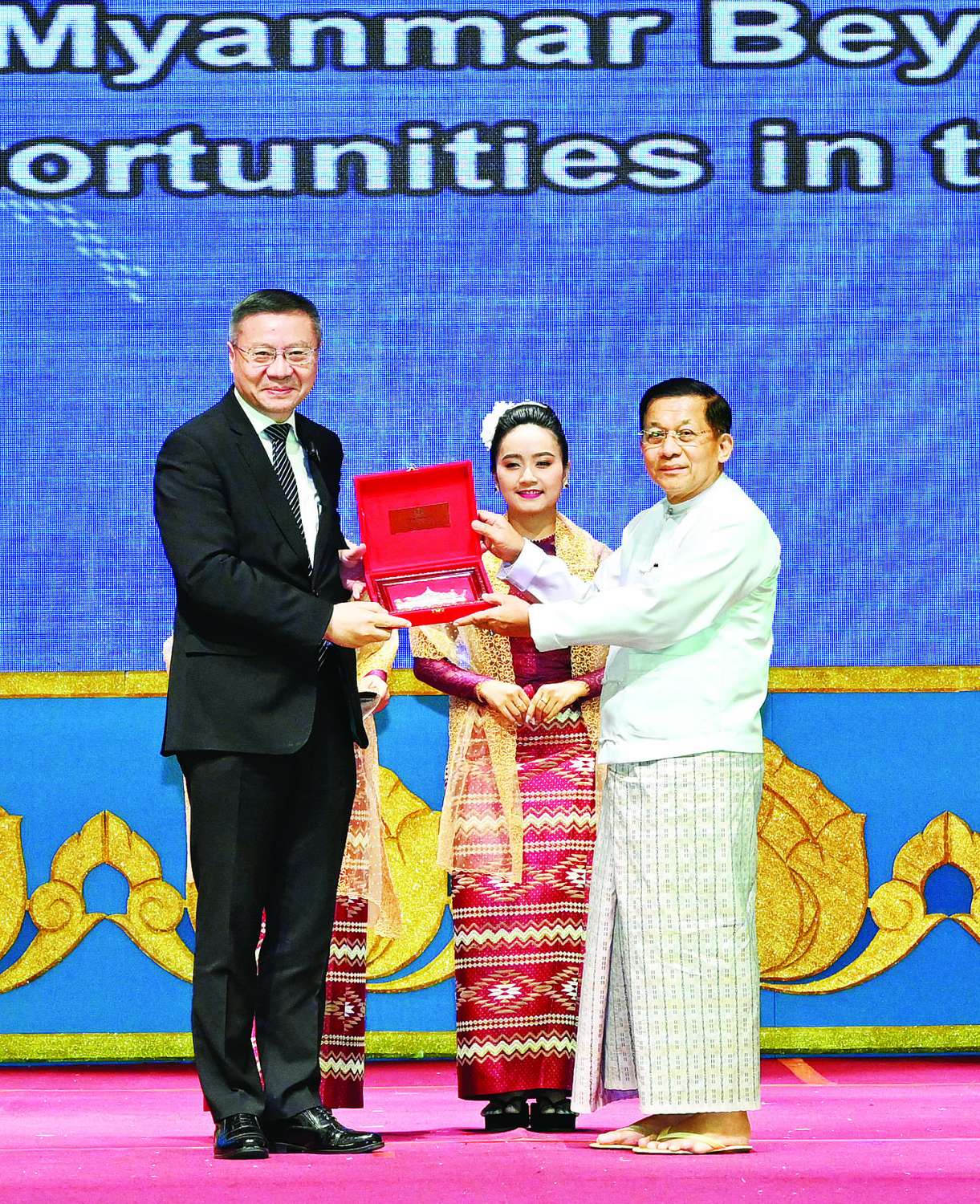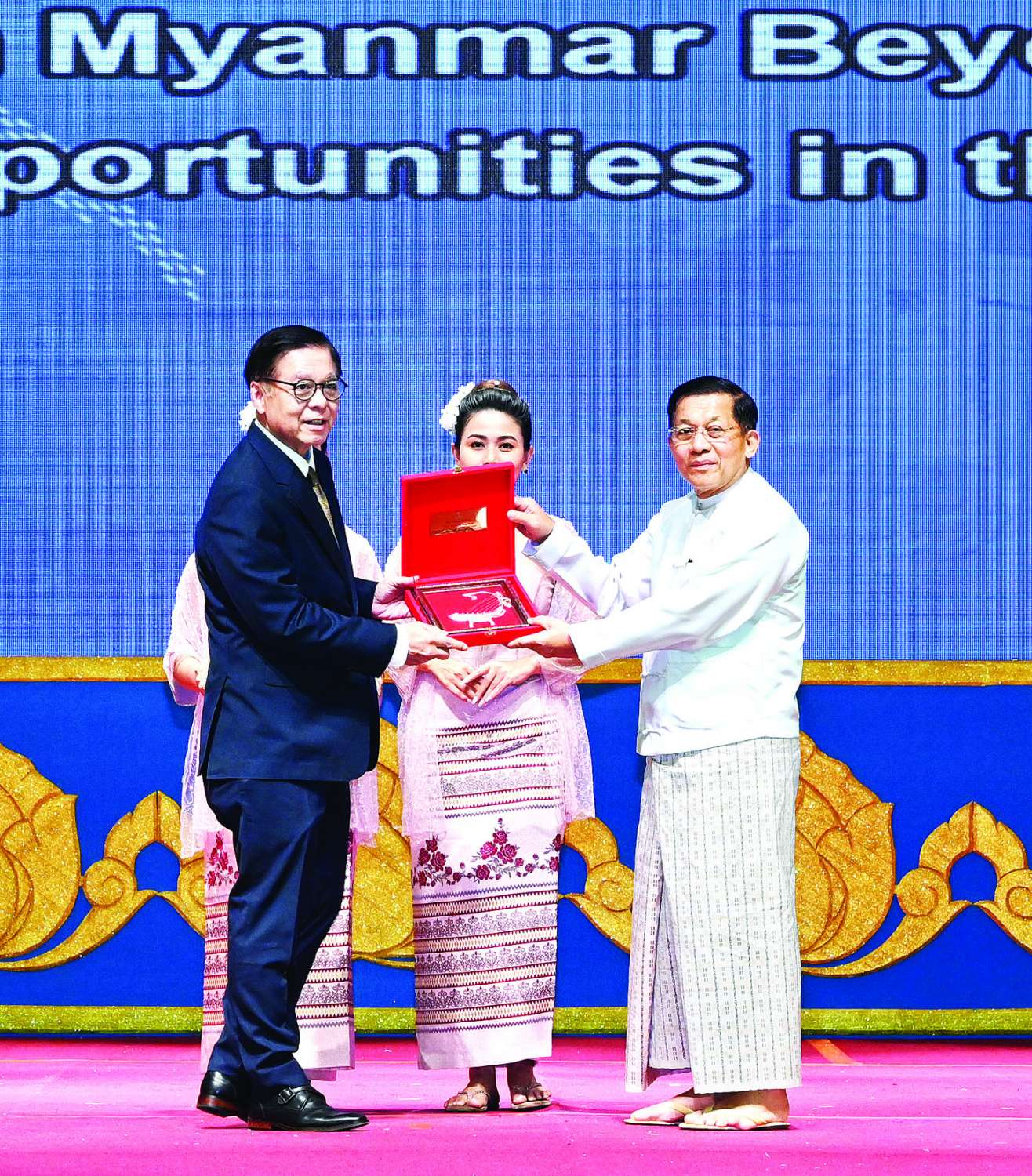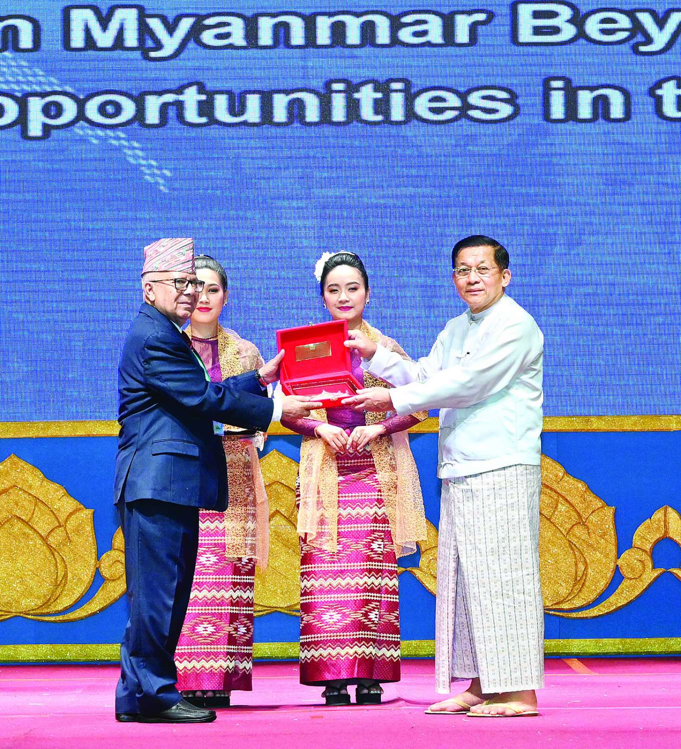 ယင်းနောက် နိုင်ငံတော်စီမံအုပ်ချုပ်ရေးကောင်စီဥက္ကဋ္ဌ နိုင်ငံတော်ဝန်ကြီးချုပ်က ပြည်ပမှ လာရောက်ဆွေးနွေးကြသည့် ပညာရှင်များအား အထိမ်းအမှတ်တံဆိပ်များ ပေးအပ်သည်။