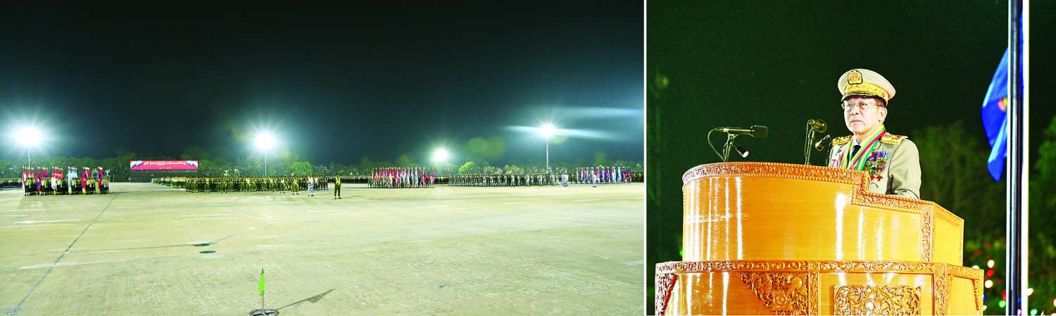 ၂၀၂၅ ခုနှစ်၊ မတ်လ ၂၇ ရက်နေ့၊ ယနေ့တွင် ကျရောက်သည့် နှစ်(၈၀)ပြည့် တပ်မတော်နေ့ စစ်ရေးပြအခမ်းအနားကို ယနေ့ညပိုင်းတွင် နေပြည်တော်စစ်ရေးပြကွင်း၌ ကျင်းပပြုလုပ်ရာ နိုင်ငံတော်စီမံအုပ်ချုပ်ရေးကောင်စီဥက္ကဋ္ဌ တပ်မတော်ကာကွယ်ရေးဦးစီးချုပ် ဗိုလ်ချုပ်မှူးကြီး သတိုးမဟာသရေစည်သူ သတိုးသီရိသုဓမ္မ မင်းအောင်လှိုင် တက်ရောက်မိန့်ခွန်းပြောကြားသည်။