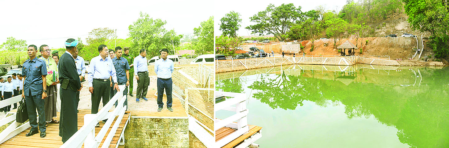 ရှင်းလင်းတင်ပြမှုများအပေါ် နိုင်ငံတော်စီမံအုပ်ချုပ်ရေးကောင်စီဥက္ကဋ္ဌ နိုင်ငံတော်ဝန်ကြီးချုပ်က ရေထွက်အား စနစ်တကျထိန်းသိမ်းသွားရန်လိုပြီး ရေကန်အတွင်းနှင့် ရေကန်ပတ်ဝန်းကျင် သန့်ရှင်းသာယာလှပရေး စဉ်ဆက်မပြတ်ဆောင်ရွက်ရန်လိုကြောင်း၊ ရေထွက်ပတ်ဝန်းကျင်ဧရိယာအတွင်း သစ်ပင်သစ်တောများကို စနစ်တကျဖြင့် ထိန်းသိမ်းသွားရန်လိုကြောင်းနှင့် အခြားလိုအပ်သည်များကို မှာကြားကာ ရေကန်အား လှည့်လည်ကြည့်ရှုခဲ့သည်။
