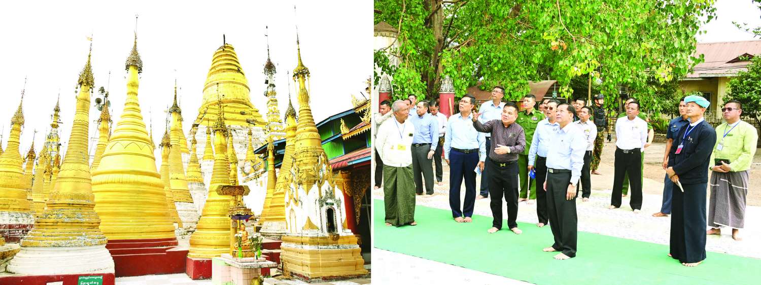 ယင်းနောက် နိုင်ငံတော်စီမံအုပ်ချုပ်ရေးကောင်စီဥက္ကဋ္ဌ နိုင်ငံတော်ဝန်ကြီးချုပ်နှင့် အဖွဲ့ဝင်များသည် ဘုရားကြီးပရိဝုဏ်အတွင်းရှိ စေတီများနှင့် သာသနိကအဆောက်အအုံများတွင် ငလျင်ဒဏ်ကြောင့် ထိခိုက်ပျက်စီးခဲ့ရမှုများအား လှည့်လည်ကြည့်ရှုစစ်ဆေးခဲ့ပြီး တာဝန်ရှိသူများ၏ တင်ပြချက်များအပေါ် လိုအပ်သည်များ လမ်းညွှန်မှာကြားသည်။ ထို့နောက်  နိုင်ငံတော်စီမံအုပ်ချုပ်ရေးကောင်စီဥက္ကဋ္ဌ နိုင်ငံတော်ဝန်ကြီးချုပ်သည် ဘုရားကြီး ဧည့်သည်တော်မှတ်တမ်းတွင် မှတ်တမ်းတင်လက်မှတ်ရေးထိုးသည်။