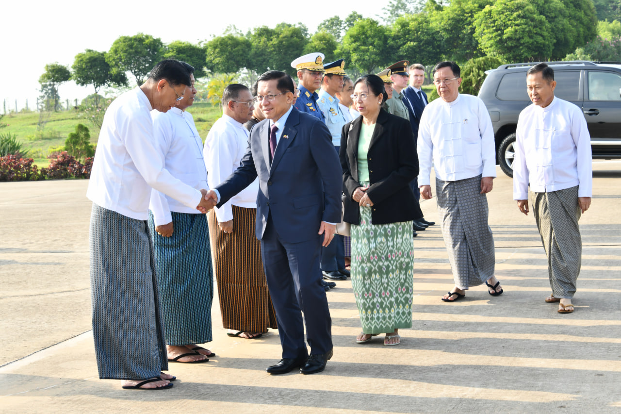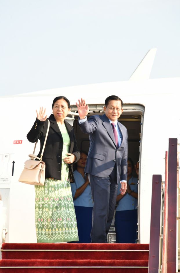 ရုရှားဖက်ဒရေးရှင်းနိုင်ငံသမ္မတ မစ္စတာ ဗလာဒီမာပူတင်၏ ဖိတ်ကြားချက်အရ ရုရှားဖက်ဒရေးရှင်းနိုင်ငံတွင် ကျင်းပပြုလုပ်မည့် ၁၉၄၁-၁၉၄၅ မဟာမျိုးချစ် စစ်ပွဲကြီးအောင်ပွဲ နှစ် (၈၀) ပြည့် အထိမ်းအမှတ်စစ်ရေးပြအခမ်းအနားသို့ တက်ရောက်ရန်အတွက် နိုင်ငံတော်စီမံအုပ်ချုပ်ရေးကောင်စီဥက္ကဋ္ဌ နိုင်ငံတော်ဝန်ကြီးချုပ် ဗိုလ်ချုပ်မှူးကြီး မင်းအောင်လှိုင်နှင့် ဇနီး ဒေါ်ကြူကြူလှ ဦးဆောင်သည့် မြန်မာအဆင့်မြင့်ကိုယ်စားလှယ်အဖွဲ့သည် ယနေ့နံနက်ပိုင်းတွင် အထူးလေယာဉ်ဖြင့် နေပြည်တော်တပ်မတော်လေဆိပ်မှ ထွက်ခွာသည်။