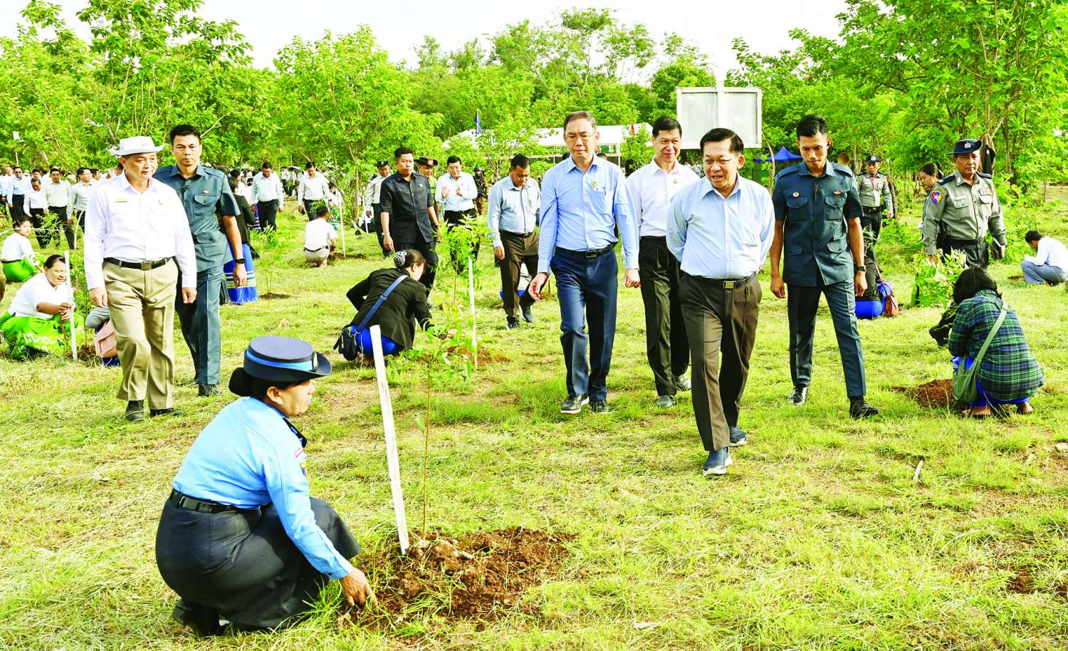 ယနေ့တွင် အပူပိုင်းဒေသ ၁၃ ခရိုင်၌ ပျိုးပင်ပေါင်း ၃၄၉၅ဝ ပင်အား စိုက်ပျိုးသွားမည်ဖြစ်ကြောင်း၊ ယခုနေရာများသည် ယခင်တည်းက စိုက်ပျိုးခဲ့သည့် နေရာများဖြစ်ကြောင်း၊ သို့သော်ရှင်သန်မှုများ အားနည်းခြင်း၊ ဒေသလိုအပ်ချက်အရ သစ်ပင်များ တရားမဝင်ခုတ်ထွင်ခြင်းများကြောင့် ထိုက်သင့်သလောက် အကျိုးမရရှိခဲ့ကြောင်း၊ ယခုကဲ့သို့ သစ်ပင်စိုက်ပျိုးပွဲများ ကျင်းပခြင်းကြောင့် အချိန်၊ လူအင်အားနှင့် ငွေကြေးကုန်ကျမှုများရှိကြောင်း၊ ထို့ကြောင့် မိမိတို့စိုက်ပျိုးသည့် အပင်များ စနစ်တကျစိုက်ပျိုးထိန်းသိမ်းသွားကြရန် “တစ်ပင်စိုက်၊ တစ်ပင်ရှင်” ဖြစ်အောင်လိုကြောင်း၊ မိမိတို့စိုက်ပျိုးသည့် အပင်များအားလုံးရှင်သန်စေရန်အတွက် တာဝန်ရှိသူများက စနစ်တကျဆက်လက်ထိန်းသိမ်းခြင်းလုပ်ငန်းများကို စေတနာထား၍ ဆောင်ရွက်သွားကြရန်လိုကြောင်း။ မိမိတို့နိုင်ငံတွင် သစ်တောဖုံးလွှမ်းမှုများ ကျဆင်းလာကြောင်း၊ ယခုအခါ ၄၂ ဒသမ ၁၉ ရာခိုင်နှုန်းခန့်သာ ကျန်ရှိတော့ကြောင်း၊ တစ်နိုင်ငံလုံးသစ်တောဖုံးလွှမ်းမှု ဧရိယာ ၅၀ ရာခိုင်နှုန်းပြန်လည်ရရှိစေရေး သစ်ပင်စိုက်ပျိုးများကို ကျင်းပပြုလုပ်၍ ကြိုးပမ်းဆောင်ရွက်လျက်ရှိကြောင်း၊ အဆိုပါသစ်ပင်စိုက်ပျိုးခြင်း၏ အကျိုးကျေးဇူးများကို လက်ငင်းခံစား၍မရနိုင်သော်လည်း နောင် ၇ နှစ် ၈ နှစ်ခန့်တွင် ခံစားရမည်ဖြစ်ကြောင်း၊ မိမိတို့အနေဖြင့်လည်း ယခင်က စိုက်ပျိုးထိန်းသိမ်းခဲ့မှုများကြောင့် သစ်ကြီးဝါးကြီးများ၏ အရိပ်အာဝါသကို ခံစားရခြင်းဖြစ်ကြောင်း၊ မိမိတို့၏ လာမည့်သားစဉ်မြေးဆက်ကိုလည်း ထိုသို့ ခံစားရစေလိုသည့်စိတ်ဖြင့် ဆောင်ရွက်သွားကြရန်လိုကြောင်း။