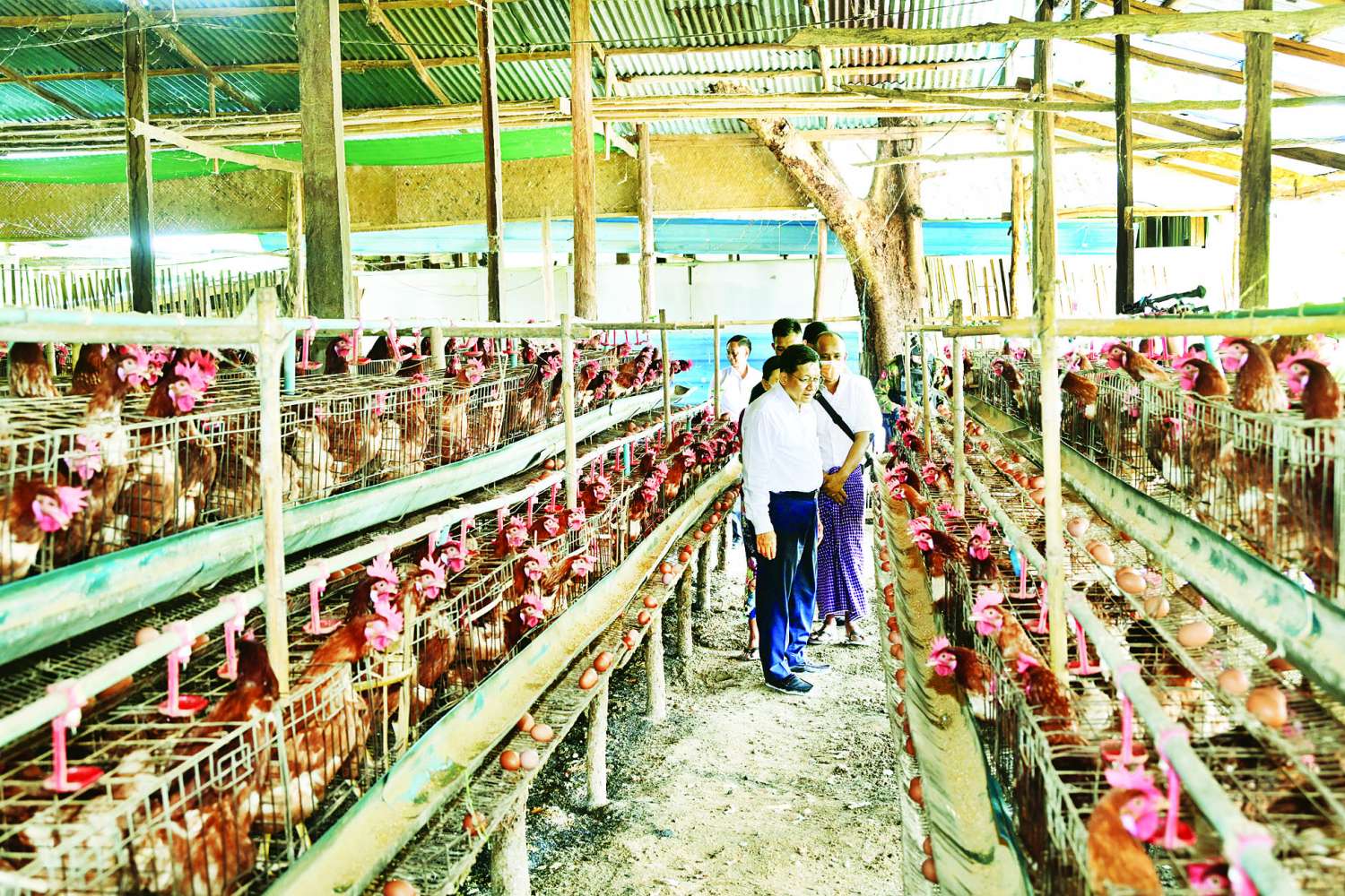 ထို့နောက် နိုင်ငံတော်လုံခြုံရေးနှင့် အေးချမ်းသာယာရေးကော်မရှင်ဥက္ကဋ္ဌနှင့် အဖွဲ့ဝင်များသည် အောင်လံမြို့ရှိ ရွှေတင့်ဝမ်းမွေးမြူရေးဇုန်သို့ ရောက်ရှိကြပြီး မွေးမြူရေးဇုန်အတွင်း ဥစားကြက်များ မွေးမြူထားရှိမှုကို လိုက်လံကြည့်ရှုစစ်ဆေးရာ တာဝန်ရှိသူများက ရှင်းလင်းတင်ပြကြသည်။