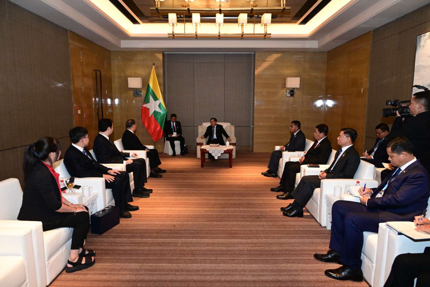 အဆိုပါတွေ့ဆုံဆွေးနွေးပွဲသို့ ပြည်ထောင်စုသမ္မတမြန်မာနိုင်ငံတော် ယာယီသမ္မတ နိုင်ငံတော်လုံခြုံရေးနှင့် အေးချမ်းသာယာရေးကော်မရှင်ဥက္ကဋ္ဌနှင့်အတူ ကော်မရှင်အတွင်းရေးမှူး တွဲဖက်အမှုဆောင်ချုပ် ဗိုလ်ချုပ်ကြီး ရဲဝင်းဦး၊ ခရီးစဉ်တွင် လိုက်ပါလာသည့် ကော်မရှင်အဖွဲ့ဝင်များ၊ တရုတ်နိုင်ငံဆိုင်ရာ မြန်မာနိုင်ငံသံအမတ်ကြီးနှင့် တပ်မတော်အဆင့်မြင့်အရာရှိကြီးများ တက်ရောက်ကြသည်။