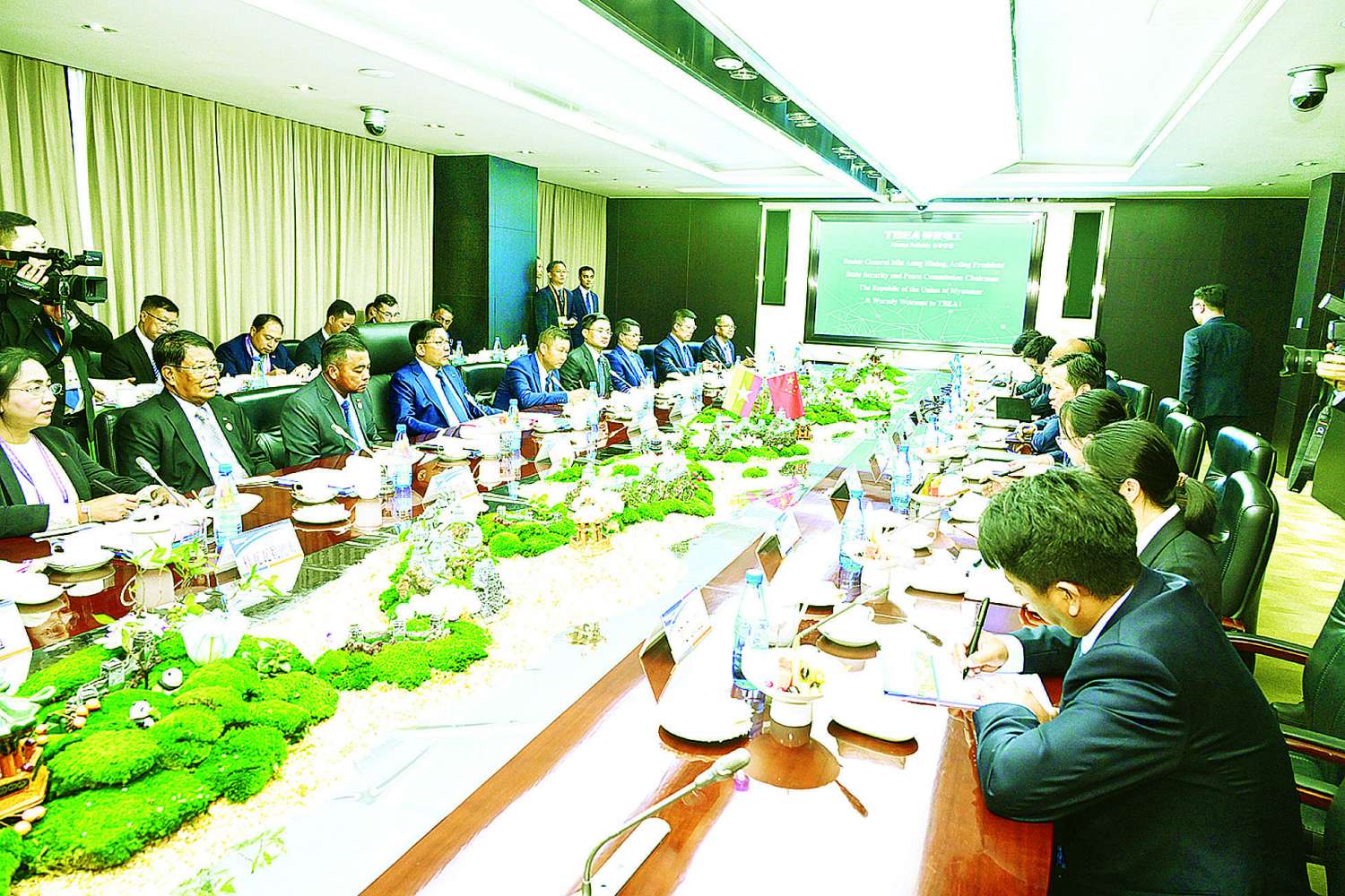 ထို့နောက် ပြည်ထောင်စုသမ္မတ မြန်မာနိုင်ငံတော်ယာယီသမ္မတ နိုင်ငံတော်လုံခြုံရေးနှင့် အေးချမ်းသာယာရေးကော်မရှင်ဥက္ကဋ္ဌနှင့် အဖွဲ့ဝင်များသည် ကုမ္ပဏီရုံးခန်း၌ ခင်းကျင်းပြသထားသည့် TBEA ကုမ္ပဏီမှ ဆောက်လုပ်ထားသော လျှပ်စစ်ဓာတ်အားပေးစက်ရုံများ၊ ကမ္ဘာတစ်ဝန်းစွမ်းအင်ထုတ်လုပ်ရေး၊ သတ္ထုထုတ်လုပ်ရေးလုပ်ငန်းများ ဆောင်ရွက်လျက်ရှိမှု၊ လျှပ်စစ်ပစ္စည်းများ ထုတ်လုပ်တပ်ဆင်ခြင်းလုပ်ငန်းများ ဆောင်ရွက်လျက်ရှိမှုအခြေအနေများအား လိုက်လံကြည့်ရှုလေ့လာကြပြီး ရှင်းလင်းပြသမှုများအပေါ် သိရှိလိုသည်များ မေးမြန်းဆွေးနွေးသည်။