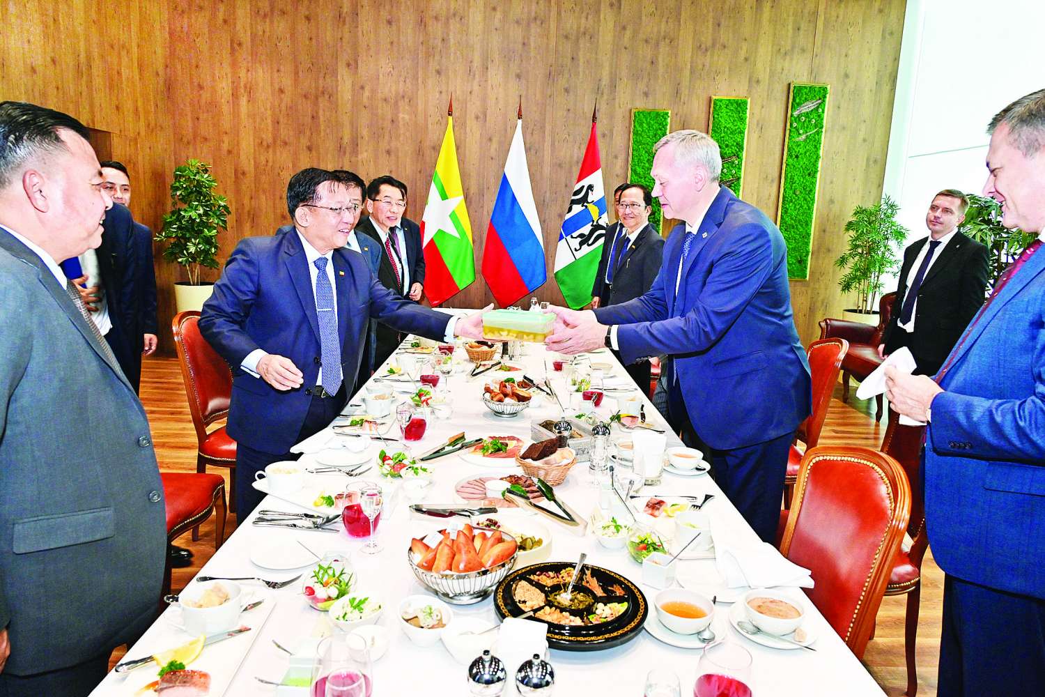 ထို့နောက် ပြည်ထောင်စုသမ္မတမြန်မာနိုင်ငံတော် ယာယီသမ္မတ နိုင်ငံတော်လုံခြုံရေးနှင့် အေးချမ်းသာယာရေးကော်မရှင်ဥက္ကဋ္ဌနှင့် အဖွဲ့ဝင်များ လိုက်ပါလာသည့် အထူးလေယာဉ်သည် ရုရှားဖက်ဒရေးရှင်းနိုင်ငံ နိုဗာစီဗစ်မြို့ သာမာရှယ်ဗာလေဆိပ်၌ ခေတ္တရပ်နားခဲ့ရာ နိုဗာစီဗစ်ဒေသအုပ်ချုပ်ရေးမှူး Mr. Travnikov Ahdrey Aleksandrovich နှင့် တာဝန်ရှိသူများက လေဆိပ်၌ ကြိုဆိုနှုတ်ဆက်ခဲ့ကြသည်။