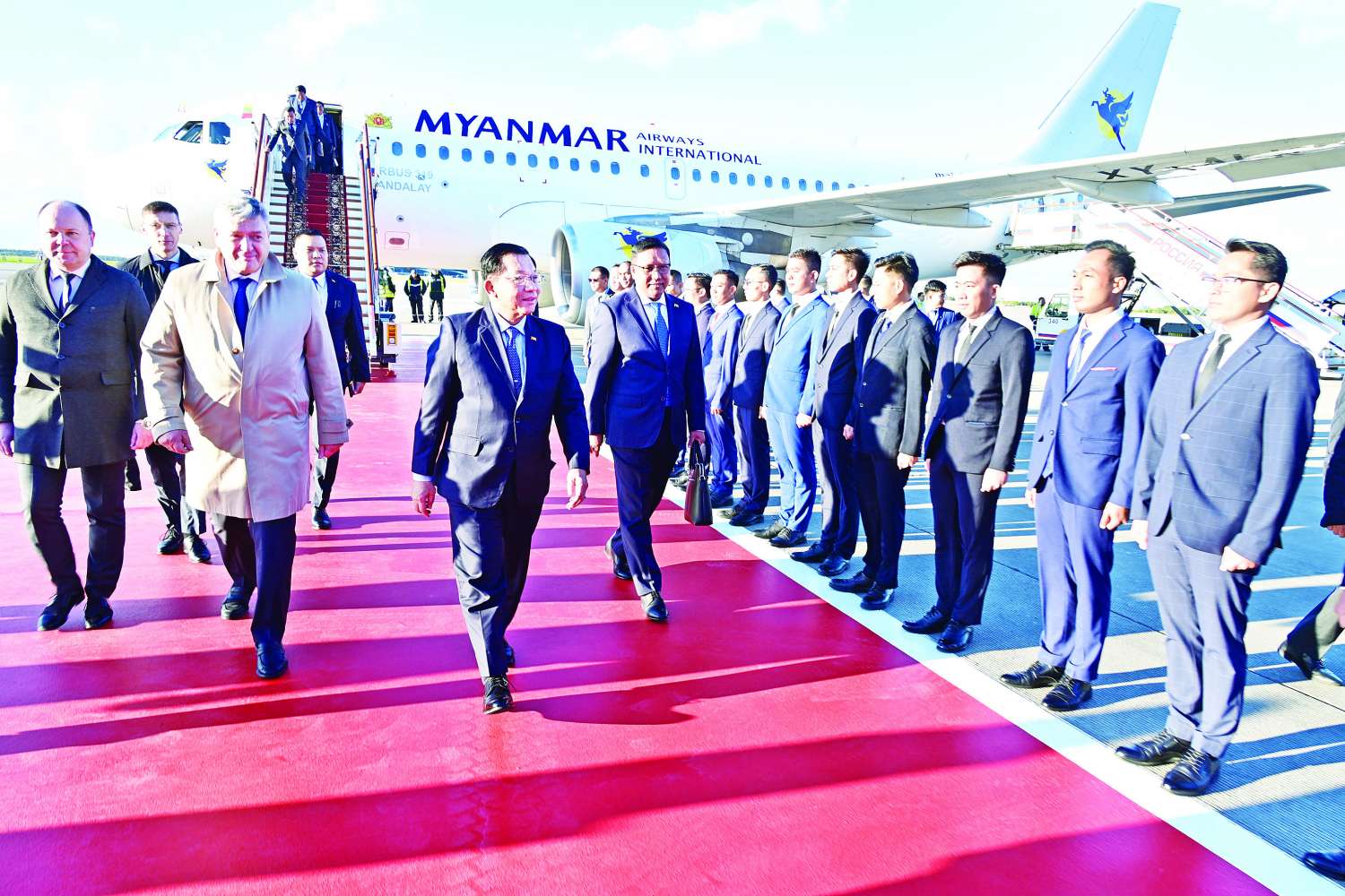 ပြည်ထောင်စုသမ္မတမြန်မာနိုင်ငံတော် ယာယီသမ္မတ နိုင်ငံတော်လုံခြုံရေးနှင့် အေးချမ်းသာယာရေးကော်မရှင်ဥက္ကဋ္ဌ ဗိုလ်ချုပ်မှူးကြီး မင်းအောင်လှိုင် ဦးဆောင်သည့် မြန်မာအဆင့်မြင့်ကိုယ်စားလှယ်အဖွဲ့ ကမ္ဘာ့အဏုမြူသီတင်းပတ်ဖိုရမ် - ၂၀၂၅ (World Atomic Week Forum 2025)သို့ တက်ရောက်ရန် ရုရှားဖက်ဒရေးရှင်းနိုင်ငံသို့ ရောက်ရှိ