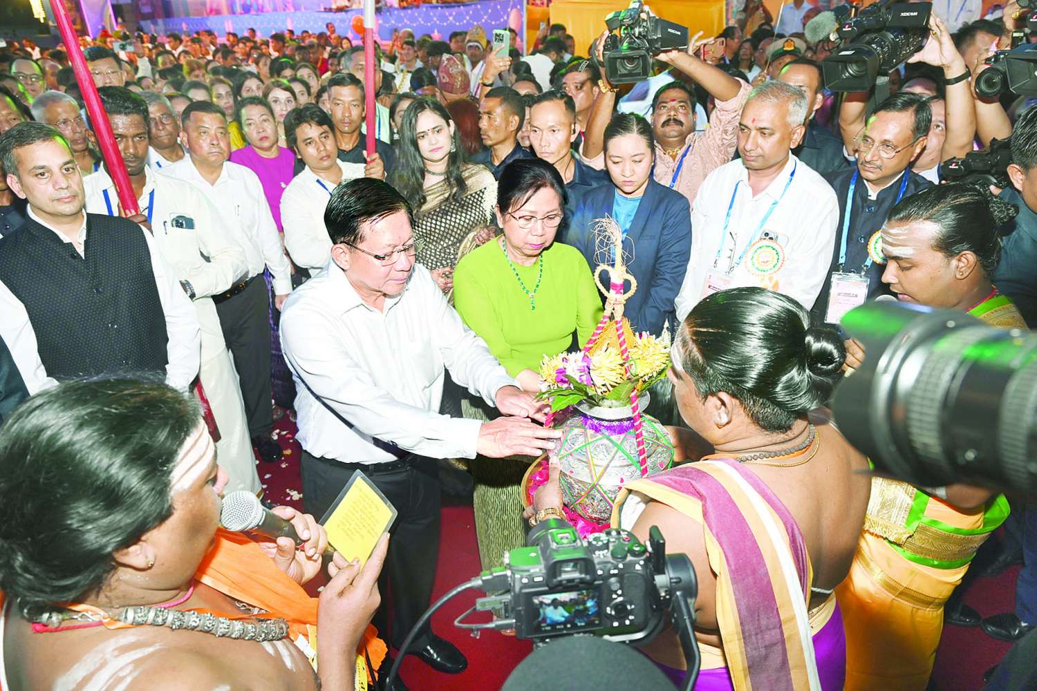 ထို့နောက်နိုင်ငံတော်ယာယီသမ္မတ နိုင်ငံတော်လုံခြုံရေးနှင့် အေးချမ်းသာယာရေးကော်မရှင်ဥက္ကဋ္ဌနှင့် ဇနီးတို့အား ဟိန္ဒူရိုးရာ ဆီမီးနံ့သာဖြင့် ကြိုဆိုကြပြီး ဟိန္ဒူရိုးရာ တစ်ခုဖြစ်သည့် မွန်မြတ်ပြီးမင်္ဂလာရှိသော ဟိန္ဒူရိုးရ Pur Kumbham (ပုရ်ဏကုမ္ဘမ်) ဖြင့်ဆုတောင်း ကြိုဆိုဂါရဝပြုကြသည်။ ယင်းနောက် နိုင်ငံတော်ယာယီသမ္မတ နိုင်ငံတော်လုံခြုံရေးနှင့် အေးချမ်းသာယာရေးကော်မရှင်ဥက္ကဋ္ဌက ဒီပါဝလီအထိမ်းအမှတ်အခမ်းအနားကို စက်ခလုပ်နှိပ်ဖွင့်လှစ်ပေးပြီး တက်ရောက်လာကြသူများနှင့်အတူ စုပေါင်းမှတ်တမ်းတင်ဓာတ်ပုံရိုက်သည်။