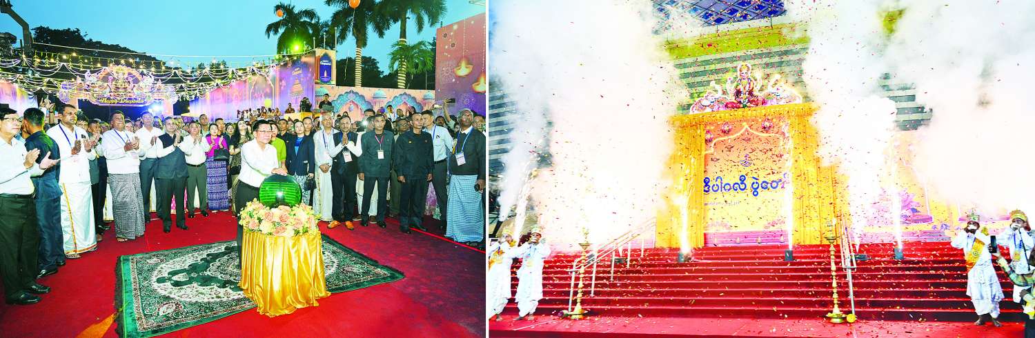 ဦးစွာ နိုင်ငံတော်ယာယီသမ္မတ နိုင်ငံတော်လုံခြုံရေးနှင့် အေးချမ်းသာယာရေးကော်မရှင်ဥက္ကဋ္ဌနှင့်ဇနီးတို့အား တာဝန်ရှိသူများက ကြိုဆိုနှုတ်ဆက်ကြသည်။ ယင်းနောက် ဟိန္ဒူရိုးရာ ဒီပါဝလီအထိမ်းအမှတ်အခမ်းအနား မင်္ဂလာမုခ်ဦးကို ရန်ကုန်တိုင်းဒေသကြီးဝန်ကြီးချုပ်၊ မြန်မာနိုင်ငံဆိုင်ရာ အိန္ဒိယနိုင်ငံသံရုံးမှ သံရုံးယာယီတာဝန်ခံနှင့် တာဝန်ရှိသူများ၊ ဟိန္ဒူမျိုးနွယ်စုဝင်မျးကဖဲကြိုး ဖြတ်ဖွင့်လှစ်ပေးကြပြီး ဟိန္ဒူရိုးရာကဘူးများမှုတ်ခြင်း၊ မိုးပျံပူဖောင်းများ လွှတ်တင်ခြင်းများကို ဆောင်ရွက်ကြသည်။