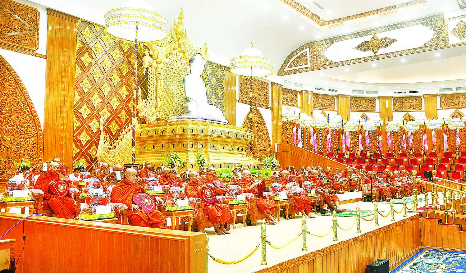 အခမ်းအနားသို့ နိုင်ငံတော်သံဃမဟာနာယကအဖွဲ့ဥက္ကဋ္ဌ သန်လျင်မြို့၊ မင်းကျောင်းပထမပြန်စာသင်တိုက် ပဓာနနာယက အဂ္ဂမဟာပဏ္ဍိတ၊ အဂ္ဂမဟာသဒ္ဓမ္မ ဇောတိကဓဇ ဒေါက်တာ ဘဒ္ဒန္တစန္ဒိမာဘိဝံသ၊ နိုင်ငံတော်သံဃမဟာနာယကအဖွဲ့အကျိုးတော်ဆောင် မန္တလေးမြို့၊ မစိုးရိမ်တိုက်သစ် မဟာနာယက၊ ဓမ္မသမိဒ္ဓိကျောင်းဆရာတော် အဂ္ဂမဟာပဏ္ဍိတ၊ အဂ္ဂမဟာသဒ္ဓမ္မဇောတိကဓဇ၊ မဟာဓမ္မကထိက ဗဟုဇနဟိတဓရ ဘဒ္ဒန္တဝါသေဋ္ဌာဘိဝံသနှင့် ဥပ္ပါတသန္တိစေတီတော် ဂေါပကအဖွဲ့ ဩဝါဒါစရိယဆရာတော်ကြီးများ အမှူးပြုသည့် ပင့်ဖိတ်ထားသော ဆရာတော်ကြီး ၂၇ ပါး ကြွရောက်ချီးမြှင့်တော်မူကြပြီး နိုင်ငံတော်ယာယီသမ္မတ နိုင်ငံတော်လုံခြုံရေးနှင့်အေးချမ်းသာယာရေးကော်မရှင်ဥက္ကဋ္ဌ ဗိုလ်ချုပ်မှူးကြီး မင်းအောင်လှိုင်နှင့် ဇနီး ဒေါ်ကြူကြူလှတို့နှင့်အတူ ကော်မရှင်ဒုတိယဥက္ကဋ္ဌ ဒုတိယဗိုလ်ချုပ်မှူးကြီး စိုးဝင်းနှင့် ဇနီး ဒေါ်သန်းသန်းနွယ်၊ ကော်မရှင်အဖွဲ့ဝင် နိုင်ငံတော်ဝန်ကြီးချုပ် ဦးညိုစောနှင့် ဇနီး၊ ကော်မရှင်အဖွဲ့ဝင် အမှုဆောင်ချုပ် ဦးအောင်လင်းဒွေးနှင့် ဇနီး၊ ကော်မရှင်အတွင်းရေးမှူး တွဲဖက်အမှုဆောင်ချုပ် ဗိုလ်ချုပ်ကြီး ရဲဝင်းဦးနှင့် ဇနီး၊ ကော်မရှင်အဖွဲ့ဝင်များနှင့် ဇနီးများ၊ ပြည်ထောင်စုအဆင့်ပုဂ္ဂိုလ်များ၊ ပြည်ထောင်စုဝန်ကြီးများနှင့်ဇနီးများ၊ နေပြည်တော်ကောင်စီဥက္ကဋ္ဌ၊ ကာကွယ်ရေးဦးစီးချုပ်ရုံးမှ အဆင့်မြင့်တပ်မတော်အရာရှိကြီးများနှင့် ဇနီးများ၊ နေပြည်တော်တိုင်းစစ်ဌာနချုပ်တိုင်းမှူးနှင့် တာဝန်ရှိသူများ တက်ရောက်ကြသည်။