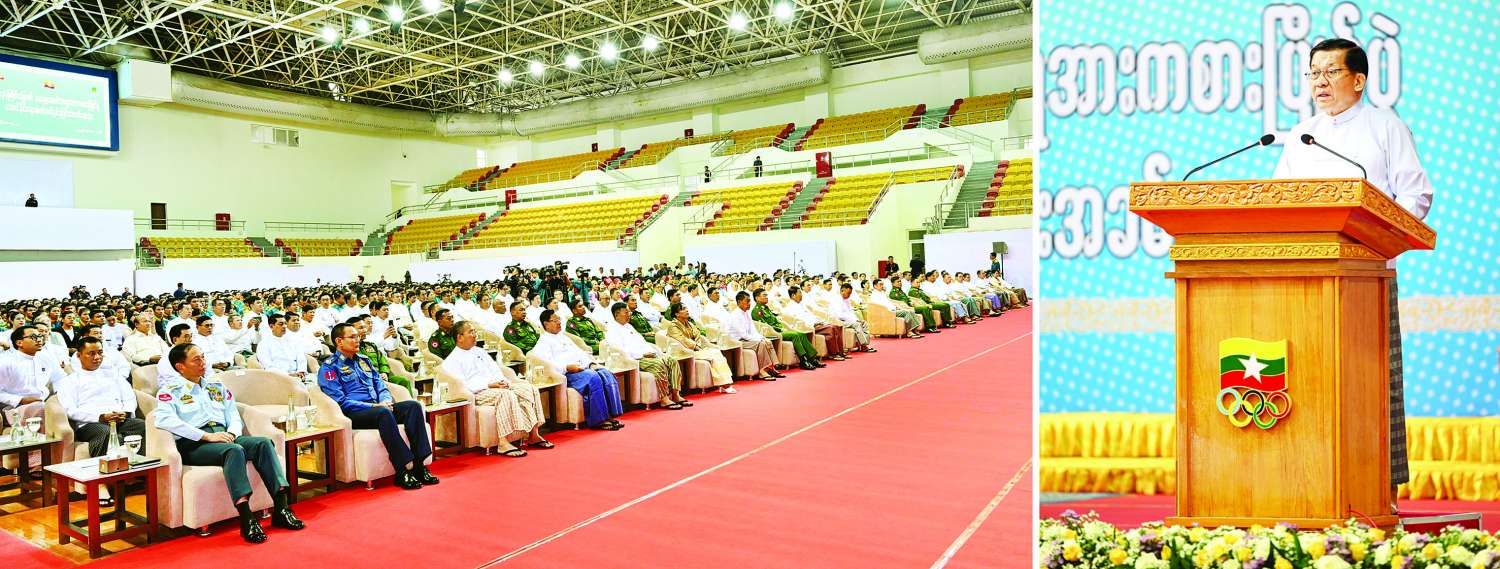 တစ်မျိုးသားလုံး သက်ရှည်ကျန်းမာစေရေးအတွက် အားကစားကဏ္ဍသည် အရေးကြီးကြောင်း၊ “အားကစားမြှင့်တင်ခြင်းသည် နိုင်ငံတော်ကို ကာကွယ်စောင့်ရှောက်နေခြင်းဖြစ်သည်” ဆိုသည့် ဆောင်ပုဒ်အတိုင်း အားကစားစိတ်ဓာတ်သည် တိုင်းချစ်ပြည်ချစ်စိတ်ကို ဖြစ်ပေါ်လာစေပြီး တိုင်းပြည်ကို ကာကွယ်စောင့်ရှောက်လိုသည့်စိတ် ပေါ်ပေါက်လာစေမည်ဖြစ်သည့်အတွက် အားကစားကဏ္ဍကို အားပေးမြှင့်တင် ဆောင်ရွက်ပေးနေခြင်းဖြစ်ကြောင်း။