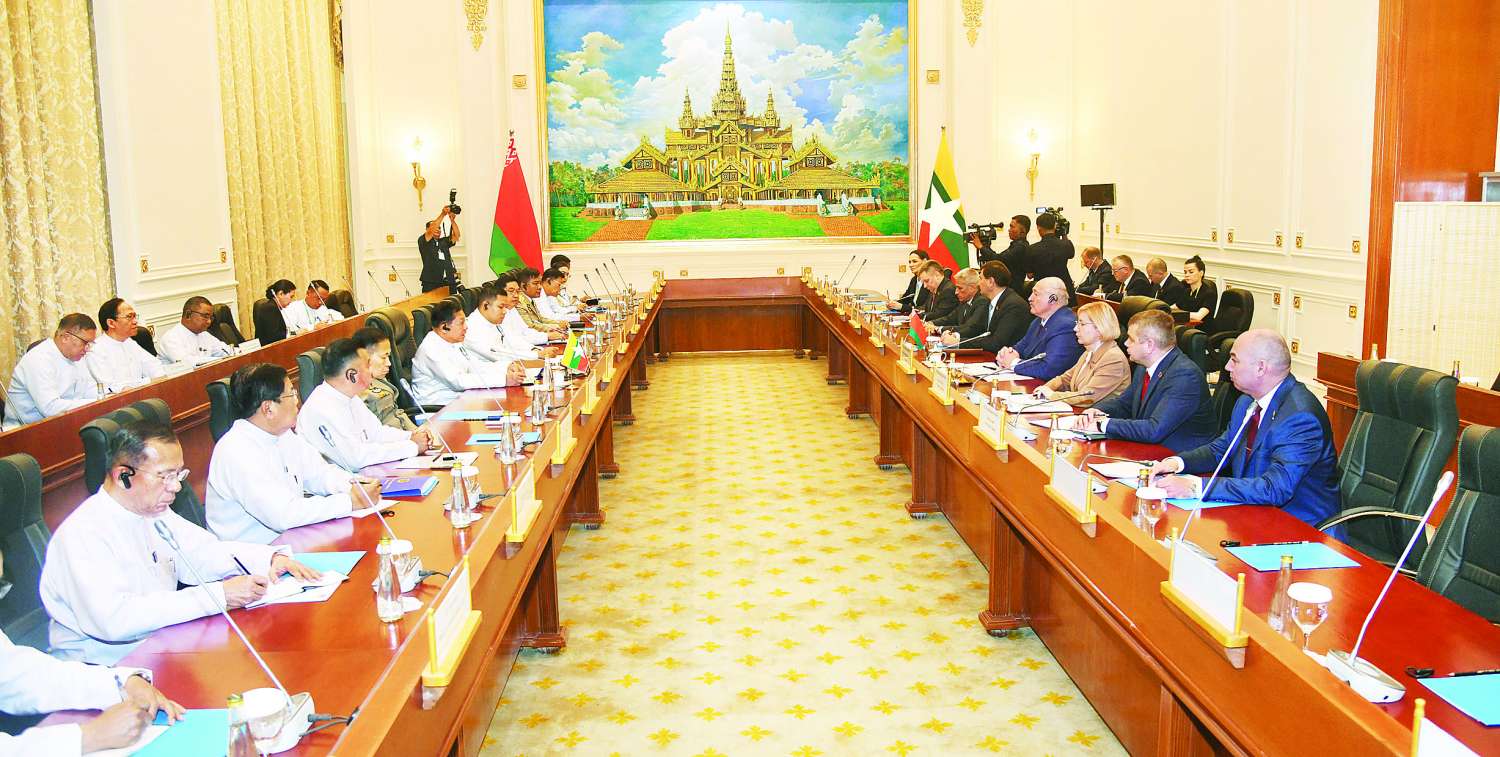 ပြည်ထောင်စုသမ္မတမြန်မာနိုင်ငံတော်နှင့် ဘယ်လာရုစ်သမ္မတနိုင်ငံတို့အကြား နှစ်နိုင်ငံတွေ့ဆုံဆွေးနွေးပွဲကို ယနေ့နံနက်ပိုင်းတွင် သမ္မတအိမ်တော်၊ သံတမန်ဆောင်ဧည့်ခန်းမ၌ ကျင်းပပြုလုပ်သည်။