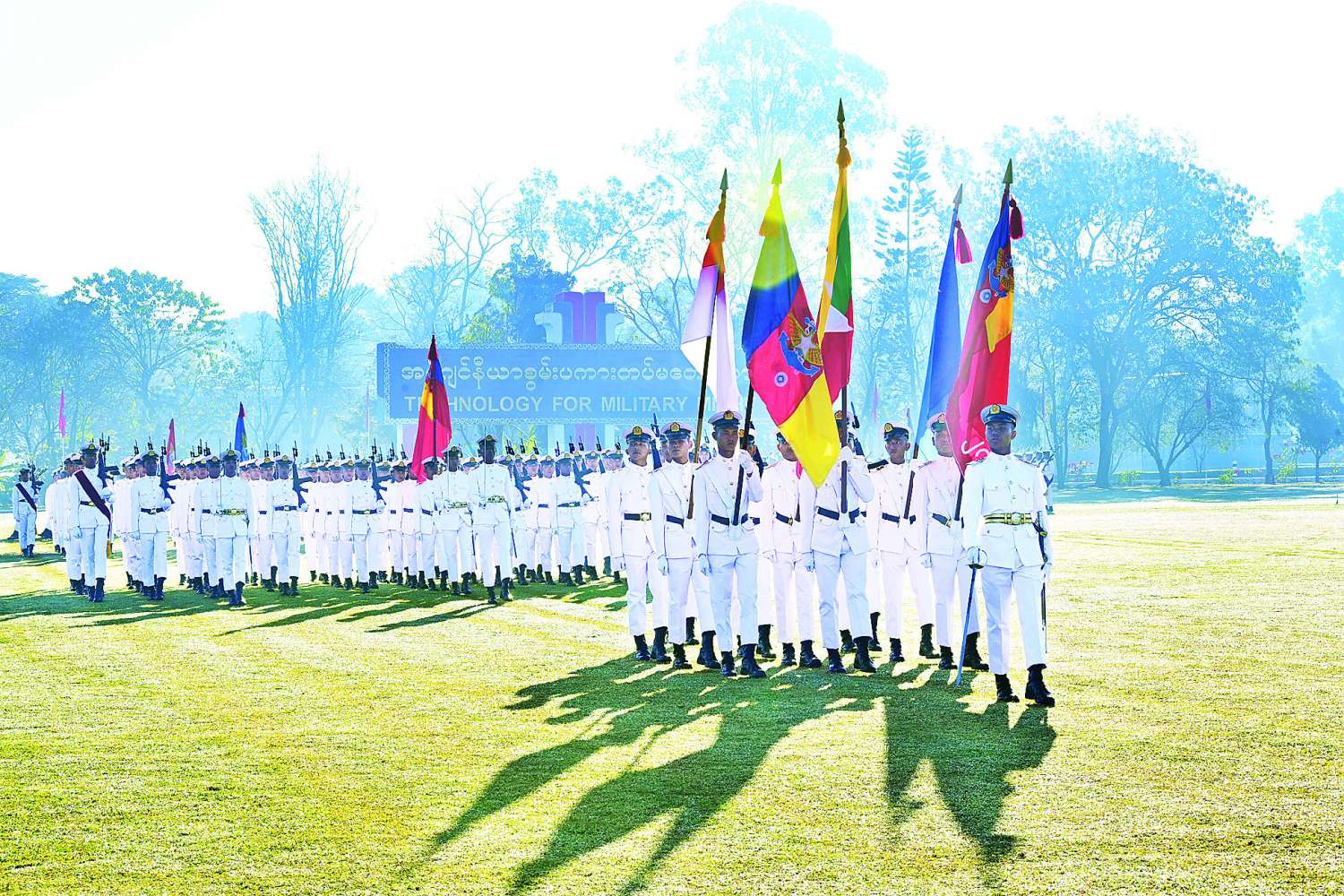 မျက်မှောက်ခေတ်ကာလစစ်ဘက်ဆိုင်ရာ သိပ္ပံနှင့်နည်းပညာများ အလျင်အမြန်ဖွံ့ဖြိုးတိုးတက်လာခြင်းကြောင့် ခေတ်သစ်စစ်ပွဲများတွင် ဦးဆောင်ကွပ်ကဲထိန်းချုပ်သည့် နည်းပညာကို လူသားများအစားဉာဏ်ရည်တုနည်းပညာ (AI) အသုံးပြုသည်အထိ တိုးတက်ပြောင်းလဲလာကြပြီဖြစ်ကြောင်း၊ စစ်ပွဲများတွင် ဉာဏ်ရည်တုနည်းပညာ (AI) စနစ်များကို အသုံးပြုခြင်းဖြင့် အချိန်နှင့်တစ်ပြေးညီ သတင်းအချက်အလက်များ စုဆောင်းနိုင်သည့်အတွက် ရန်သူ၏ လှုပ်ရှားမှုများကို ထိထိရောက်ရောက် ထောက်လှမ်းနိုင်မည်ဖြစ်ကြောင်း၊ ဉာဏ်ရည်တုနည်းပညာ (AI) ၏ အရေးပါသည့် အခန်းကဏ္ဍတစ်ခုမှာ ဆိုက်ဘာလုံခြုံရေးပင်ဖြစ်ကြောင်း၊ ဆိုက်ဘာတိုက်ခိုက်မှုများကို လျင်မြန်စွာဖော်ထုတ်နိုင်ပြီး အချိန်မီတုံ့ပြန်ကာကွယ်နိုင်ခြင်းကြောင့် စစ်ဘက်ကွန်ရက်များ၏ လုံခြုံရေးကို အမြင့်ဆုံးအထိ မြှင့်တင်ပေးနိုင်မည်ဖြစ်ကြောင်း၊ ထို့ကြောင့် ရဲဘော်တို့အနေဖြင့် ခေတ်နှင့်အညီ စဉ်ဆက်မပြတ် တိုးတက်ပြောင်းလဲနေသည့် အင်ဂျင်နီယာဆိုင်ရာနည်းပညာများနှင့် လိုက်လျောညီစွာ ပြောင်းလဲနေသည့် စစ်မဟာဗျူဟာ၊ စစ်နည်းဗျူဟာများကို “လေ့လာ၊ လေ့ကျင့်၊ လိုက်နာ” ဆိုသည့် ဆောင်ပုဒ်နှင့်အညီ အမြဲမပြတ်ကြိုးစားလေ့လာသင်ယူကြရန်လည်း မှာကြားလိုကြောင်း။