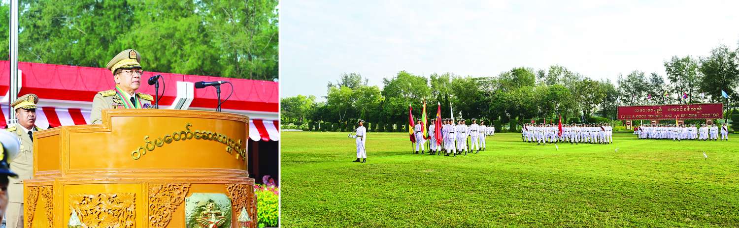 တပ်မတော်ဆေးတက္ကသိုလ်၊ ဗိုလ်လောင်းသင်တန်းအမှတ်စဉ် (၂၆) သင်တန်းဆင်းဂုဏ်ပြုစစ်ရေးပြအခမ်းအနားကို ယနေ့နံနက်ပိုင်းတွင် ရန်ကုန်မြို့ရှိ တပ်မတော်ဆေးတက္ကသိုလ်စစ်ရေးပြကွင်း၌ ကျင်းပပြုလုပ်ရာ နိုင်ငံတော်လုံခြုံရေးနှင့် အေးချမ်းသာယာရေးကော်မရှင်ဥက္ကဋ္ဌ တပ်မတော်ကာကွယ်ရေးဦးစီးချုပ် ဗိုလ်ချုပ်မှူးကြီး သတိုးမဟာသရေစည်သူ သတိုးသီရိသုဓမ္မ မင်းအောင်လှိုင် တက်ရောက်မိန့်ခွန်းပြောကြားသည်။