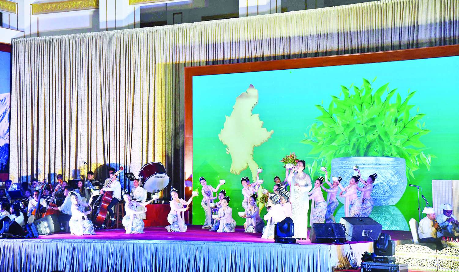 ထို့နောက် နိုင်ငံတော်ယာယီသမ္မတ နိုင်ငံတော်လုံခြုံရေးနှင့်အေးချမ်းသာယာရေးကော်မရှင်ဥက္ကဋ္ဌနှင့် ဇနီး၊ အခမ်းအနားတက်ရောက်လာကြသူများသည် ဂုဏ်ပြုဆောင်ခန်းမ၌ ပဒေသာကပွဲကို ကြည့်ရှုအားပေးကြသည်။