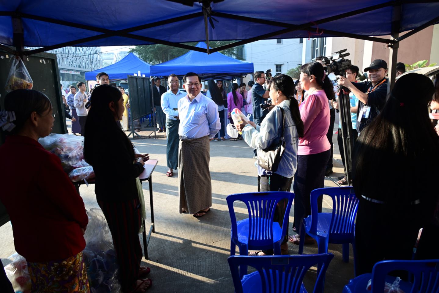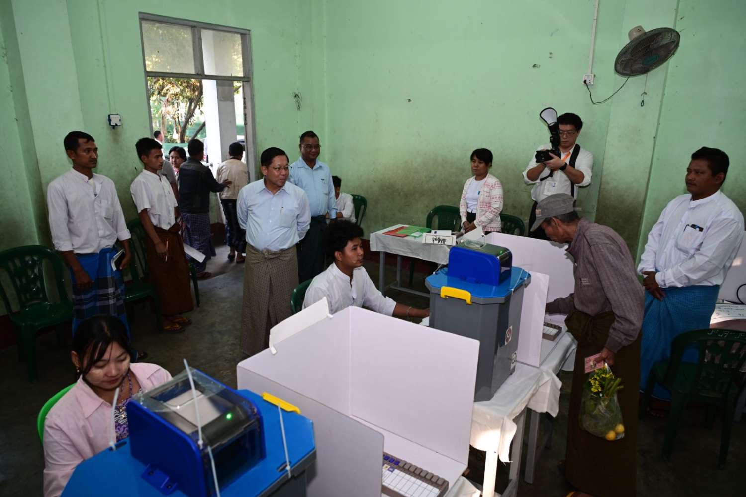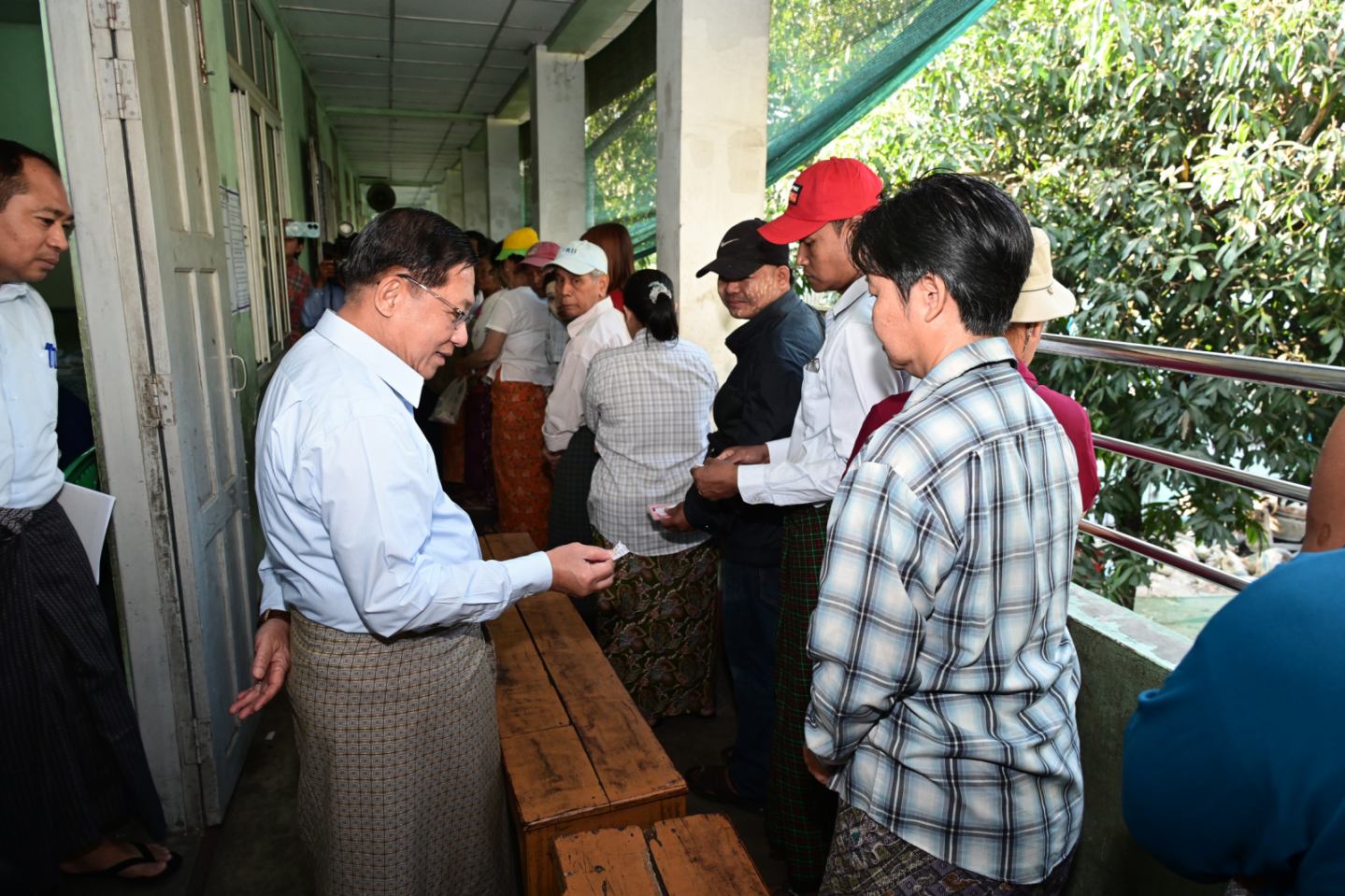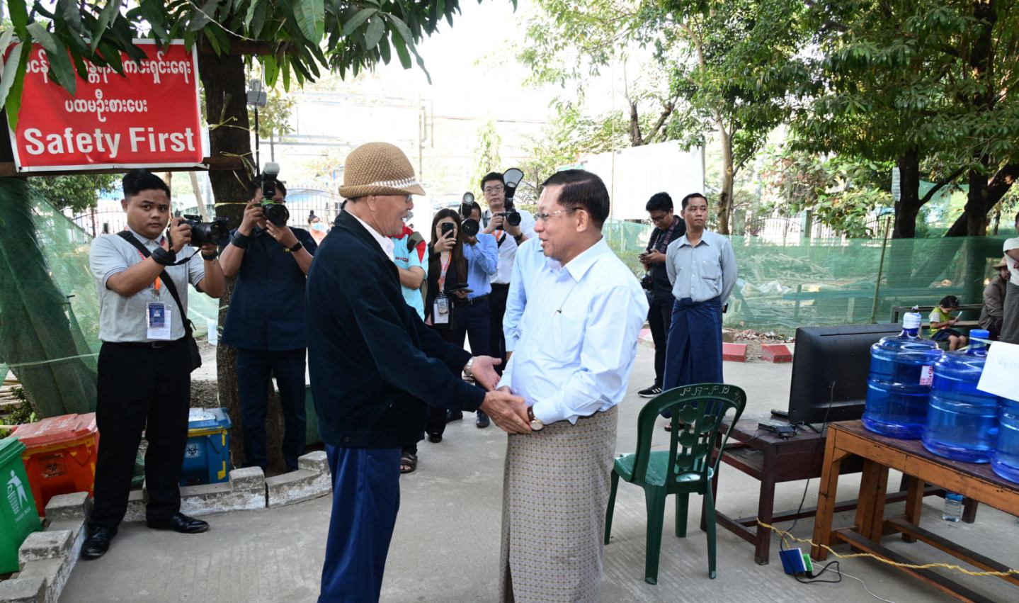 ထိုကဲ့သို့ မဲဆန္ဒရှင်ပြည်သူများ ဆန္ဒမဲများပေးနေမှုများကို နိုင်ငံတော်ယာယီသမ္မတ နိုင်ငံတော်လုံခြုံရေးနှင့် အေးချမ်းသာယာရေးကော်မရှင်ဥက္ကဋ္ဌ ဗိုလ်ချုပ်မှူးကြီး မင်းအောင်လှိုင်သည် ကော်မရှင်အတွင်းရေးမှူး ဗိုလ်ချုပ်ကြီးရဲဝင်းဦးနှင့် အဖွဲ့ဝင်များလိုက်ပါ၍ ရန်ကုန်တိုင်းဒေသကြီးအတွင်းရှိ မဲရုံများသို့ သွားရောက်ကြည့်ရှုအားပေးသည်။