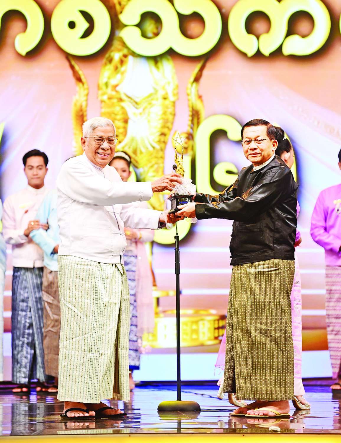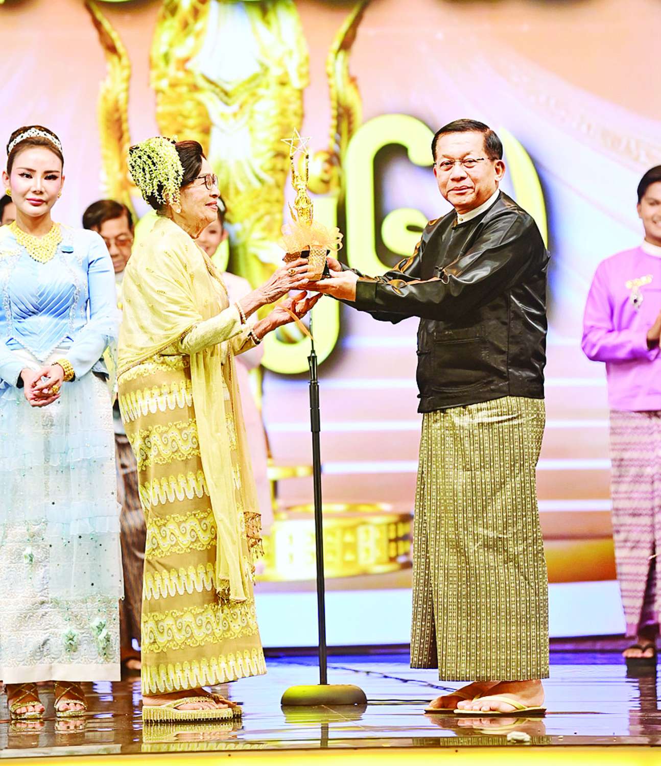 ဆက်လက်၍ နိုင်ငံတော်ယာယီသမ္မတ နိုင်ငံတော်လုံခြုံရေးနှင့် အေးချမ်းသာယာရေးကော်မရှင်ဥက္ကဋ္ဌက မြန်မာနိုင်ငံရုပ်ရှင်အစည်းအရုံးနှင့် အနုပညာရှင်၊ အတတ်ပညာရှင်များအပါအဝင် ရုပ်ရှင်လောကသားအားလုံးက လှိုက်လှဲဂုဏ်ယူစွာ ချီးမြှင့်သည့် ရုပ်ရှင်တစ်သက်တာထူးချွန်ဆုရရှိကြသော ဦး‌‌‌ဌေးအောင် (ဆွေဗမာ)၊ သရုပ်ဆောင် ဒေါ်ခင်လေးဆွေနှင့် ဒါရိုက်တာ အကယ်ဒမီ ဦးကြည်စိုးထွန်းတို့ကို ဆုများပေးအပ်ချီးမြှင့်ပြီး မှတ်တမ်းတင်စုပေါင်းဓာတ်ပုံရိုက်ကြသည်။