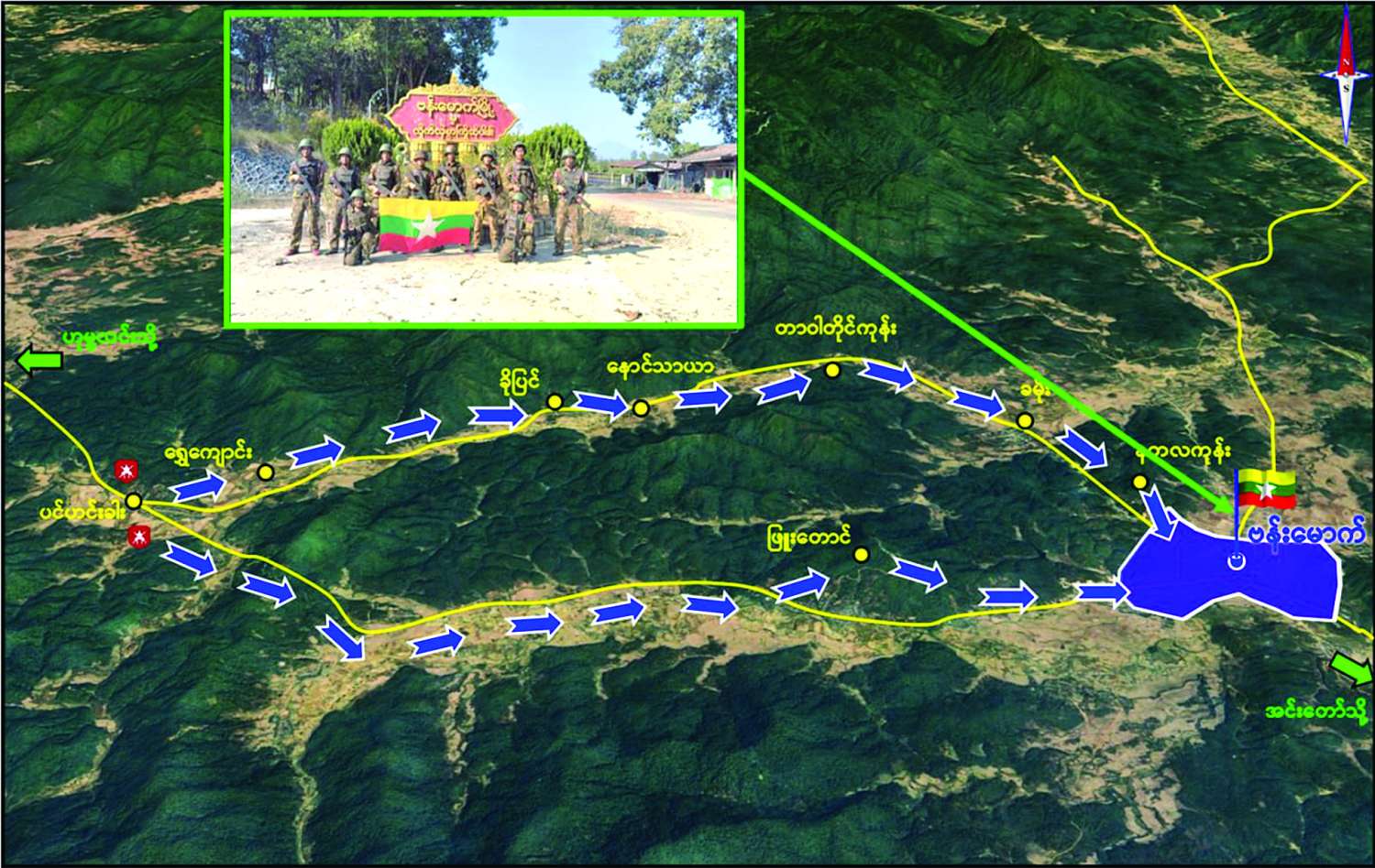 လုံခြုံရေးတပ်ဖွဲ့ဝင်များအနေဖြင့် ဗန်းမောက်မြို့အား ပြန်လည်သိမ်းပိုက်ထိန်းချုပ်နိုင်ရေး စစ်ကြောင်းများခွဲ၍ ၂၀၂၅ ခုနှစ် စက်တင်ဘာ ၂၄ ရက် မှစ၍ နယ်မြေရှင်းလင်းရေးလုပ်ငန်းများဆောင်ရွက်ခဲ့ရာ အကြမ်းဖက်သောင်းကျန်းသူများ ယာယီစိုးမိုးထားသည့် ပင်ဟင်းခါးရွာ၊ ရွှေကျောင်းရွာ၊ ခိုပြင်ရွာ၊ နောင်သာယာရွာ၊ တာဝါတိုင်ကုန်း၊ ခမိုးရွာနှင့် ဖြူးတောင်တစ်ဝိုက်တို့အားလည်းကောင်း၊ အောက်တိုဘာ ၂၆ ရက်တွင် ဗန်းမောက်မြို့၏ အနောက်ဘက်နှင့် အနောက်မြောက်ဘက် မီတာ ၂၀၀၀ ခန့်အကွာရှိ စစ်ဗျူဟာအရေးကြီးနေရာများအားလည်းကောင်း ဦးစွာထိန်းချုပ်နိုင်ခဲ့သည်။