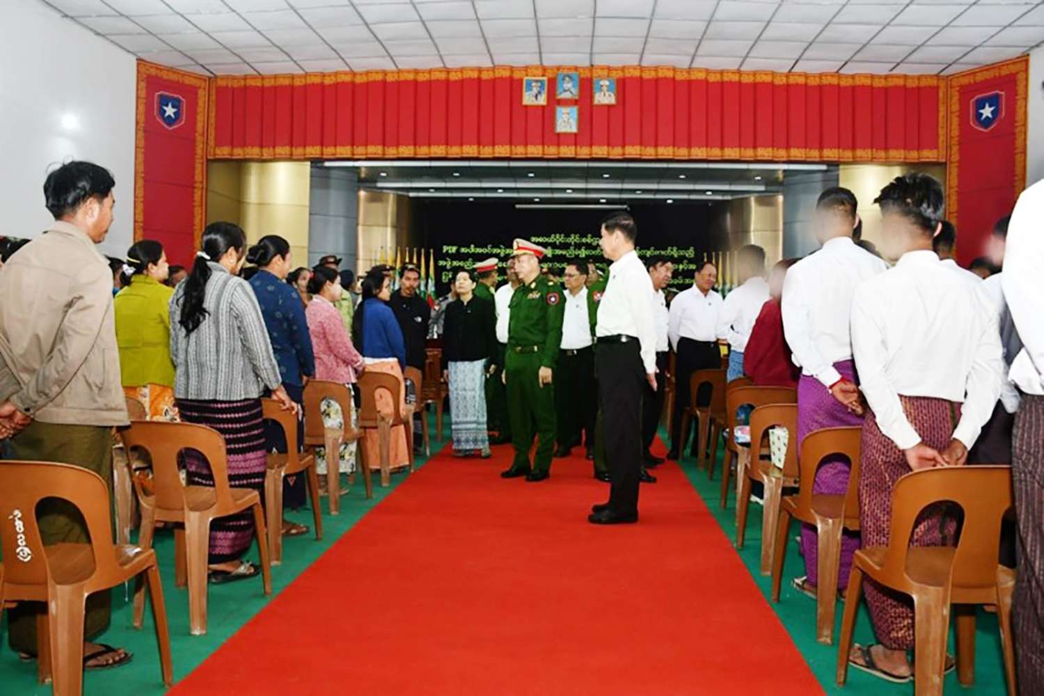 ထို့နောက် တိုင်းဒေသကြီးဝန်ကြီးချုပ်၊ တိုင်းမှူးနှင့် တာဝန်ရှိသူများက ဥပဒေဘောင်အတွင်း ပြန်လည်ဝင်ရောက်လာသူများမှ အပ်နှံထားသောလက်နက်ခဲယမ်းများအား ကြည့်ရှုစစ်ဆေး၍ တက်ရောက်လာသူများအား ရင်းရင်းနှီးနှီးလိုက်လံနှုတ်ဆက်ခဲ့ပြီး စားသောက်ဖွယ်ရာများဖြင့် တည်ခင်းဧည့်ခံခဲ့သည်။