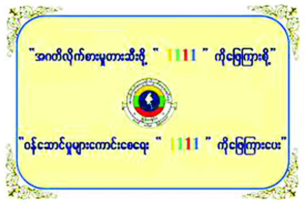၄။ သို့ဖြစ်ပါ၍ ပြည်သူလူထုအနေဖြင့် ကော်မရှင်နှင့် ပြည်ထောင်စုဝန်ကြီးဌာန/အဖွဲ့အစည်းများရှိ အဂတိလိုက်စားမှုတားဆီးကာကွယ်ရေးအဖွဲ့များက Short Code “1111” ဖြင့် SMS ပေးပို့မေးမြန်းလိုက်သော မေးခွန်းများကို ပြန်လည်ဖြေကြားပေးခြင်းသည် အဂတိလိုက်စားမှု တားဆီးကာကွယ်ရေးလုပ်ငန်းများတွင် တစ်ဖက်တစ်လမ်းမှ ပါဝင်ဆောင်ရွက်ခြင်းဖြစ်သဖြင့် အများပြည်သူထံမှ တုံ့ပြန်မှုရယူခြင်းအစီအစဉ်ကို အတူတကွ ပူးပေါင်းပါဝင်ဆောင်ရွက်စေလိုပါကြောင်း အသိပေးနှိုးဆော်တင်ပြအပ်ပါသည်။