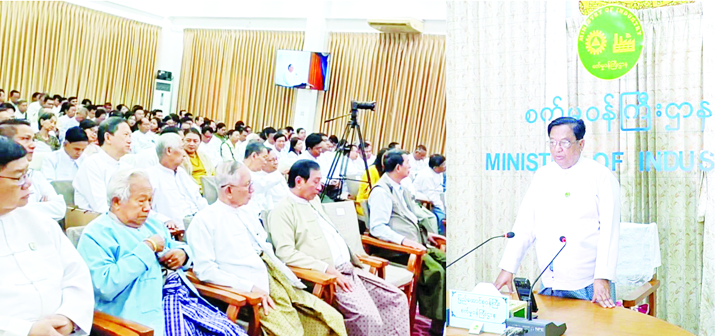 ဦးစွာ ပြည်ထောင်စုဝန်ကြီးက စက်မှုဝန်ထမ်းဟောင်းအသင်းကို ၂၀၁၄ ခုနှစ် မတ် ၁၅ ရက်တွင် အသင်းသား ၆၅၃ ဦးဖြင့် စတင်တည်ထောင်ခဲ့ပြီး ယခုအချိန်တွင် နာယက နှစ်ဦး၊ အလုပ်အမှုဆောင်အဖွဲ့ ၁၇ ဦး၊ အသင်းသား ၉၆၅၁ ဦးဖြင့် လုပ်ငန်းများဆောင်ရွက်လျက်ရှိသည့်အတွက် အထူးဝမ်းသာ ဂုဏ်ယူမိပါကြောင်း၊ အသင်းကြီးအား နိုင်ငံတော်စက်မှုလက်မှု ကဏ္ဍတိုးတက်ရေးအတွက် ပါဝင်ဆောင်ရွက်ရေး၊ ဝန်ထမ်းဟောင်းများ၏ သာရေး/နာရေး၊ ကျန်းမာရေး၊ ပညာရေးကိစ္စရပ်များကို ထောက်ပံ့ပေးရန် ရည်ရွယ်ချက်များဖြင့် ဖွဲ့စည်းထားခြင်းဖြစ်ကြောင်း၊ အသင်းစတင်တည်ထောင်စဉ်မှ ၂၀၂၅ ခုနှစ် ဒီဇင်ဘာလအထိ ၁၂ နှစ်တာ ကာလအတွင်း ကျန်းမာရေးနှင့် နာရေးကိစ္စရပ်များအတွက် အသင်းသား ၃၉၅၆ ဦး ကို ထောက်ပံ့ငွေကျပ် ၄၁၁၆၅၀၀၀ ထောက်ပံ့ပေးနိုင်ခဲ့ပါကြောင်း၊ အသင်းဝင်များသည် စက်မှုဝန်ကြီးဌာနတွင် နှစ်ရှည်တာဝန်ထမ်းဆောင်ခဲ့ကြသည့် ပုဂ္ဂိုလ်များဖြစ်သည့်အတွက် စက်မှုကဏ္ဍဖွံ့ဖြိုးတိုးတက်ရေးအတွက် ကောင်းမွန်သည့် အကြံပြုချက်များဖြင့် ညှိနှိုင်းပေါင်းစပ်ဆောင်ရွက်ပေးစေလိုကြောင်းနှင့် အသင်း၏လိုအပ်ချက်များကိုလည်း တတ်စွမ်းသရွေ့ ဖြည့်ဆည်းဆောင်ရွက်ပေးသွားမည် ဖြစ်ကြောင်း ပြောကြားသည်။