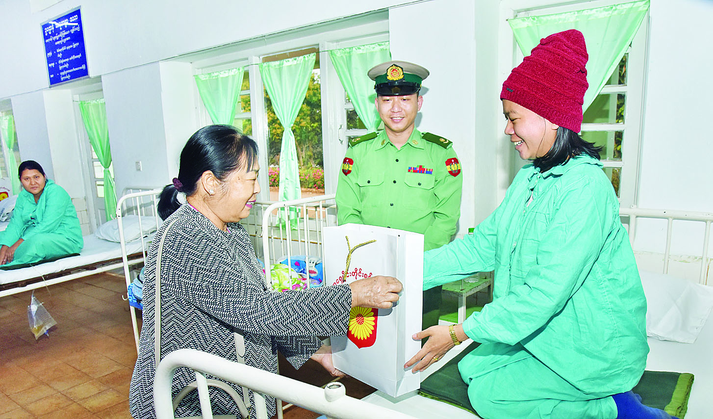 အလားတူ နိုင်ငံတော်လုံခြုံရေးနှင့် အေးချမ်းသာယာရေးကော်မရှင် ဒုတိယဥက္ကဋ္ဌ ဒုတိယတပ်မတော်ကာကွယ်ရေးဦးစီးချုပ်၊ ကာကွယ်ရေးဦးစီးချုပ်(ကြည်း)၏ဇနီး ဒေါ်သန်းသန်းနွယ်နှင့် အဖွဲ့ဝင်များသည် အမျိုးသမီးနှင့် ကလေးကုသဆောင်သို့သွားရောက်၍ ဆေးရုံတက်ရောက် ကုသလျက်ရှိသည့် လူနာများအား လိုက်လံကြည့်ရှု အားပေးစကားပြောကြားပြီး ထောက်ပံ့ပစ္စည်းများ ပေးအပ်ခဲ့သည်။