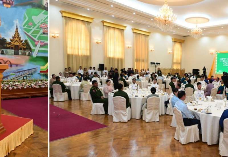 ပြည်ထောင်စုသမ္မတမြန်မာနိုင်ငံတော်ယာယီသမ္မတ နိုင်ငံတော်လုံခြုံရေးနှင့်အေးချမ်းသာယာရေးကော်မရှင်ဥက္ကဋ္ဌ ဗိုလ်ချုပ်မှူးကြီး သတိုးမဟာသရေစည်သူ သတိုးသီရိသုဓမ္မ မင်းအောင်လှိုင်နှင့် ဇနီးဒေါ်ကြူကြူလှတို့က တည်ခင်းဧည့်ခံသည့် ၂၀၂၆ ခုနှစ် (၇၉) နှစ်မြောက် ပြည်ထောင်စုနေ့အထိမ်းအမှတ် ဂုဏ်ပြုညစာစားပွဲအခမ်းအနားကို ယနေ့ညပိုင်းတွင် နေပြည်တော်ရှိ မြို့တော်ခန်းမ ဥပစာရင်ပြင်၌ ကျင်းပသည်။