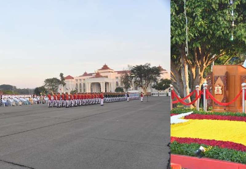 ၂၀၂၆ ခုနှစ်၊ (၇၉) နှစ်မြောက် ပြည်ထောင်စုနေ့ နိုင်ငံတော်အလံတင်အခမ်းအနားနှင့် နိုင်ငံတော်အလံအလေးပြုပွဲအခမ်းအနားကို ယနေ့နံနက်ပိုင်းတွင် နေပြည်တော်ရှိမြို့တော်ခန်းမရှေ့ ရင်ပြင်၌ ကျင်းပပြုလုပ်သည်။