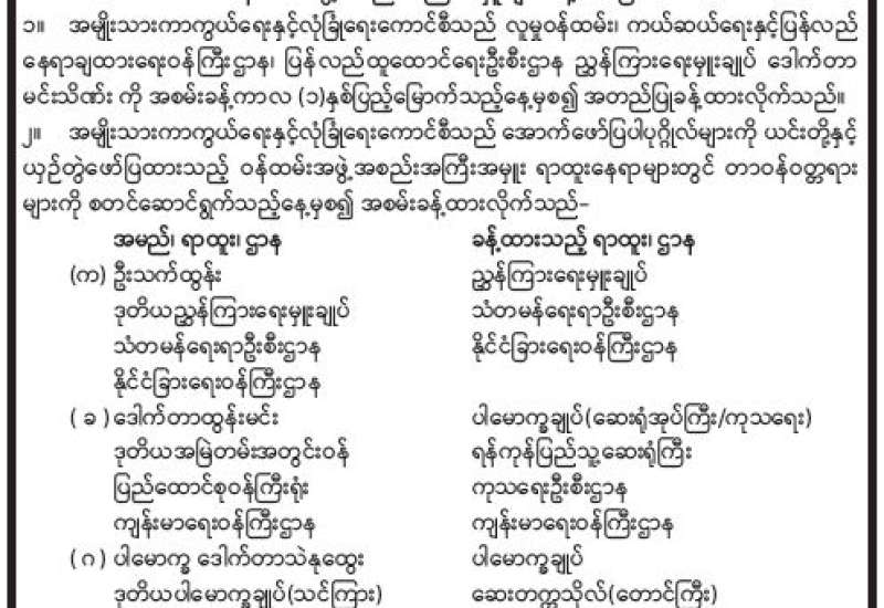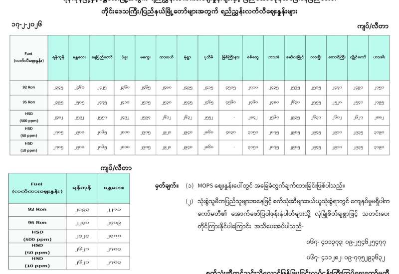 ရန်ကုန်မြို့နှင့် မန္တလေးမြို့အတွက် ရည်ညွှန်းလက်ကားဈေးနှုန်းများနှင့် ပြည်ထောင်စုနယ်မြေ နေပြည်တော်၊ တိုင်းဒေသကြီး/ပြည်နယ် မြို့တော်များအတွက် ရည်ညွှန်းလက်လီဈေးနှုန်းများ