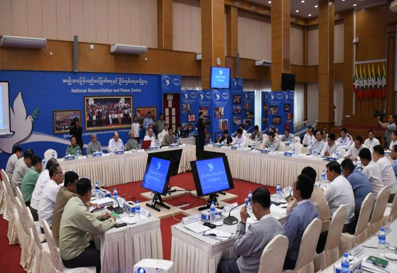 ငြိမ်းချမ်းရေးလုပ်ငန်းစဉ်ဆိုင်ရာ အလုပ်ရုံဆွေးနွေးပွဲကို ယနေ့နံနက် ၁၀ နာရီတွင် နေပြည်တော်ရှိ အမျိုးသားပြန်လည် သင့်မြတ်ရေးနှင့် ငြိမ်းချမ်းရေးဗဟိုဌာန (NRPC) ၌ ကျင်းပရာ အမျိုးသားပြန်လည်သင့်မြတ်ရေးနှင့် ငြိမ်းချမ်းရေးဗဟိုဌာန အတွင်းရေးမှူး၊ နိုင်ငံတော်အတိုင်ပင်ခံရုံးဝန်ကြီးဌာန ဒုတိယဝန်ကြီး ဦးခင်မောင်တင် တက်ရောက် အဖွင့်အမှာစကား ပြောကြားသည်။