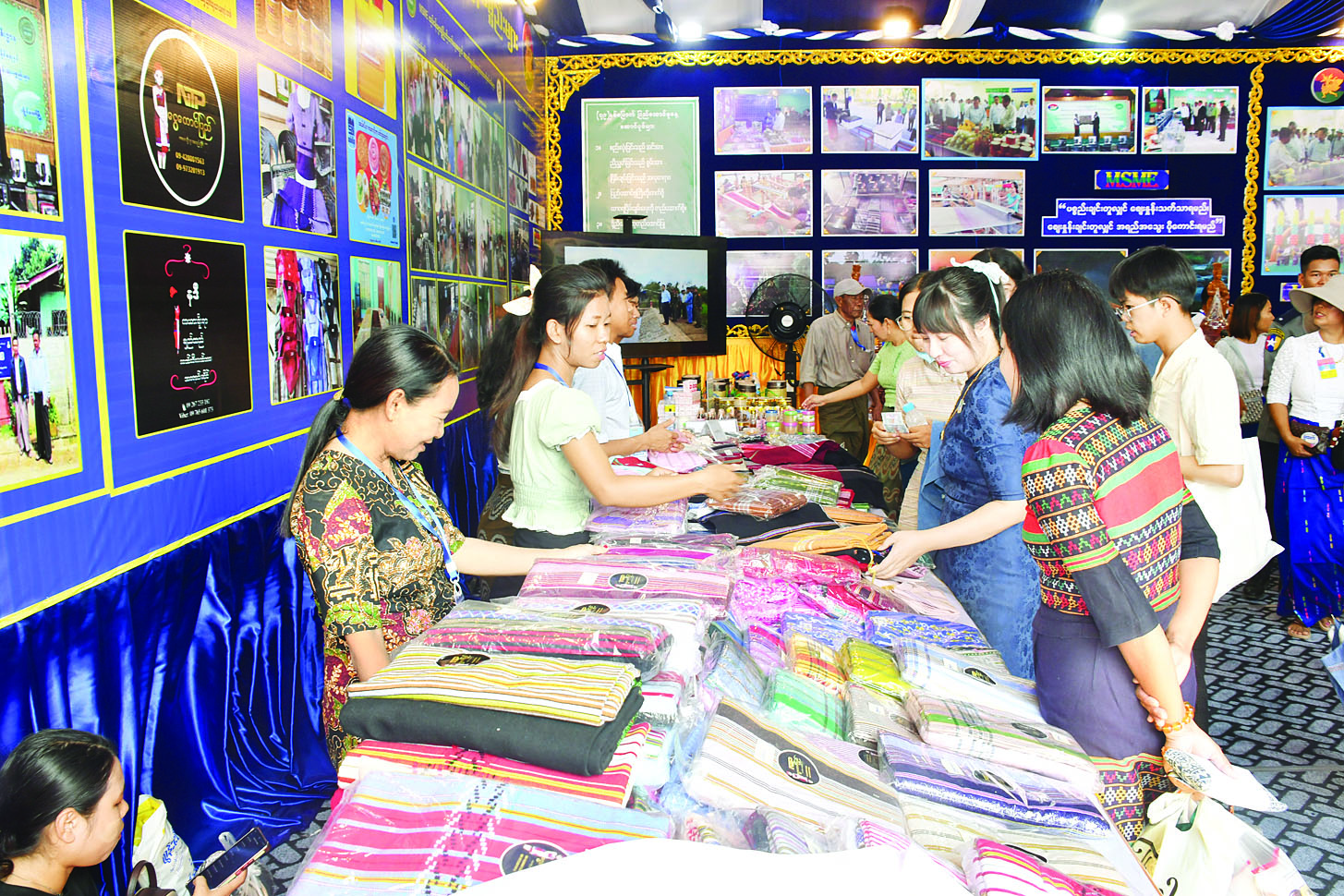 MSME ထုတ်ကုန်ပြပွဲနှင့် ဈေးရောင်းပွဲတော်၌ တိုင်းဒေသကြီးနှင့် ပြည်နယ်များမှ ထုတ်ကုန် ပစ္စည်းများကို ပြခန်းအလိုက် အမျိုးအစားစုံလင်စွာ ခင်းကျင်းပြသရောင်းချလျက်ရှိသည့် အတွက် ပြပွဲတတိယနေ့တွင် အနယ်နယ်အရပ်ရပ်မှ ပြပွဲလာပြည်သူများဖြင့် ကြိတ်ကြိတ်တိုး စည်ကားလျက်ရှိသည်။