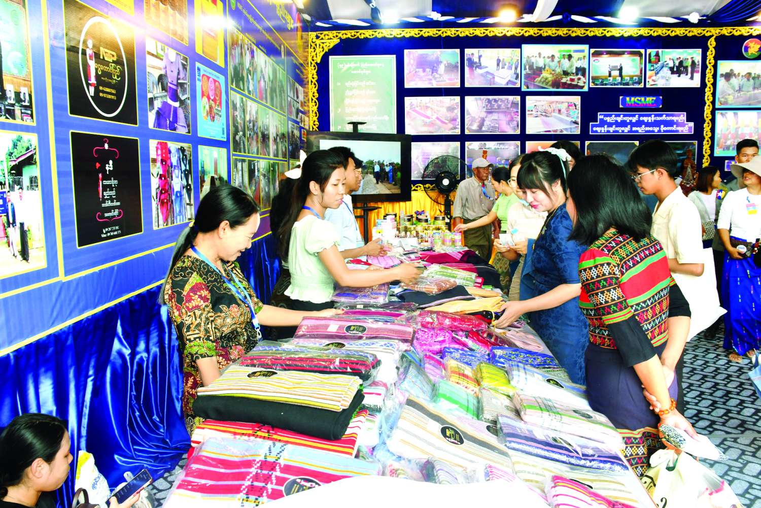 MSME ထုတ်ကုန်ပြပွဲနှင့် ဈေးရောင်းပွဲတော်၌ တိုင်းဒေသကြီးနှင့် ပြည်နယ်များမှ ထုတ်ကုန်ပစ္စည်းများကို ပြခန်းအလိုက် အမျိုးအစားစုံလင်စွာ ခင်းကျင်း ပြသရောင်းချလျက်ရှိသည့် အတွက် ပြပွဲတတိယနေ့တွင် အနယ်နယ်အရပ်ရပ်မှပြပွဲလာ ပြည်သူများဖြင့် ကြိတ်ကြိတ်တိုး စည်ကားလျက်ရှိသည်။