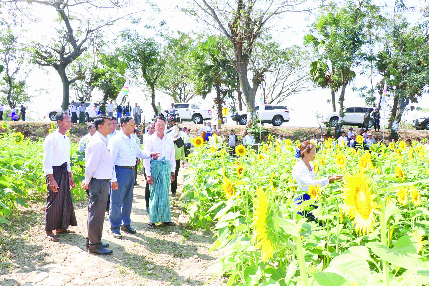 ထို့နောက် ပြည်ထောင်စု ဝန်ကြီးသည် ပုသိမ်မြို့နယ် ပေါက်ကုန်းကျေးရွာ ပေါက်ကုန်းလယ်ယာနှင့် အထွေထွေစီးပွားရေးသမဝါယမအသင်းမှ အသင်းသားတောင်သူများ၏ လယ်မြေများတွင် ဗော်လ်ကန် (Vulkan)၊ အစ်ပိုလစ် (Ippo-lit) နှင့် မာ့ဟ်ဟွန်းကေအယ်လ်ပီ (Makhaon KLP) ရုရှားနေကြာမျိုးများ စမ်းသပ်စိုက်ပျိုးထားမှုနှင့် ပျားမွေးမြူရေးပုံးများ၊ ဆိုလာရေတင်စနစ် ဆောင်ရွက်ထားမှုတို့ ကို ကြည့်ရှုအားပေးသည်။