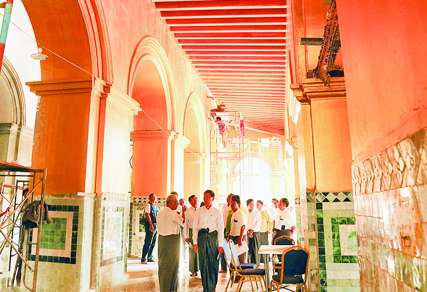 ယင်းနောက် တိုင်းဒေသကြီးဝန်ကြီးချုပ်သည် မဟာမုနိဘုရားကြီးသို့ရောက်ရှိပြီး မန္တလေးငလျင် ကြီးလှုပ်ခတ်ခဲ့မှုကြောင့် ထိခိုက်ပျက်စီးခဲ့သည့် မဟာမုနိရုပ်ရှင်တော်မြတ်ကြီး၏ ဂန္ဓကုဋိတိုက်တော် ရွှေကျောင်းတော်ကြီးနှင့် သာသနိကအဆောက်အအုံများ ပြန်လည်ပြုပြင်မွမ်းမံတည်ဆောက် ပြီးစီးမှုအခြေအနေများ၊ စိန်ဖူးတော်ကြီး၊ ငှက်မြတ် နားတော်၊ ရွှေထီးတော်များ တင်လှူပူဇော်နိုင်ရေးနှင့် ဗုဒ္ဓါဘိသေကအနေကဇာတင် အခမ်းအနားကြီး အောင်မြင်စွာကျင်းပနိုင်ရေးလုပ်ငန်းဆောင်ရွက် နေမှုအခြေအနေများကို လိုက်လံကြည့်ရှုစစ်ဆေးပြီး လိုအပ်သည်များ ဖြည့်စွက်ဆောင်ရွက်ပေးသည်။
