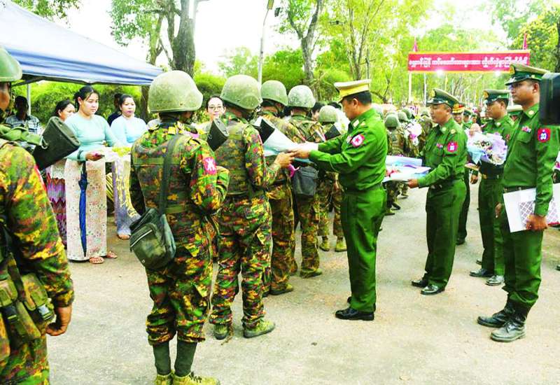 ရခိုင်ပြည်နယ် ကျောက်ဖြူမြို့နယ် ဒေသတစ်ဝိုက်ရှိ AA လက်နက်ကိုင်အကြမ်းဖက်အဖွဲ့များနှင့် PDF အမည်ခံအကြမ်းဖက်အဖွဲ့များအား ရွပ်ရွပ်ချွံချွံတိုက်ပွဲဝင်၍ အောင်ပွဲအလီလီ ရယူနိုင်ခဲ့သော ရှေ့တန်းပြန် နိုင်ငံ့သားကောင်းတပ်မတော်သားများအား ဂုဏ်ပြုကြိုဆိုခြင်းကို ယနေ့မွန်းလွဲပိုင်းက ရန်ကုန်တိုင်းဒေသကြီး လှည်းကူးမြို့နယ် အင်းတိုင်ကျေးရွာရှိ နယ်မြေခံတပ်ရင်း၌ပြုလုပ်ရာ ရန်ကုန်တိုင်းစစ်ဌာနချုပ် တိုင်းမှူး ဗိုလ်ချုပ် ပြည့်စုံလင်းနှင့် ဌာနဆိုင်ရာတာဝန်ရှိသူများ၊ ကျောင်းသား/ ကျောင်းသူများ၊ အနုပညာရှင်များနှင့် ဒေသခံပြည်သူများ ပါဝင်တက်ရောက် ဂုဏ်ပြုကြိုဆိုကြသည်။