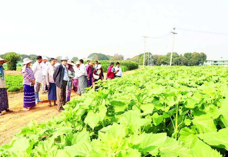 စိုက်ပျိုးရေးဦးစီးဌာန မျိုးစေ့ဌာနခွဲနှင့် နေပြည်တော်ပုဗ္ဗသီရိမြို့နယ် ဘဲကုန်းကျေးရွာ ဒေသခံတောင်သူများ ပူး‌ပေါင်းဆောင်ရွက်ထားသည့် ပေါင်ကြီးတင်စနစ်အပါအဝင် စပ်မျိုးပြောင်းဖူးမျိုး ၁၄ မျိုးအား အချင်းချင်းမျိုးဆက်ကူးစပ်ခြင်း ဆောင်ရွက်၍ ပြောင်းဖူးမျိုးကွဲစု(Composite) ကွန်ပိုးစစ်မျိုးများရရှိရန် မွေးမြူခြင်း၊ စိုက်ခင်း၊ နေကြာဆင်းရွှေကြာ(၂) ရွေးချယ်မျိုးကူးစိုက်ခင်း၊ ပန်းနှမ်း၊ ပဲယဉ်းနီ၊ ပဲပုပ်ရေဆင်း(၁၅) ပေါင်ဖော်ကြဲပက်စိုက်နည်းစနစ်စိုက်ခင်းများသို့ ယမန်နေ့နံနက်ပိုင်းက စိုက်ပျိုးရေး၊ မွေးမြူရေးနှင့် ဆည်မြောင်းဝန်ကြီးဌာန ဒုတိယဝန်ကြီး ဒေါက်တာတင်ထွဋ် ကွင်းဆင်းကြည့်ရှုစစ်ဆေးသည်။