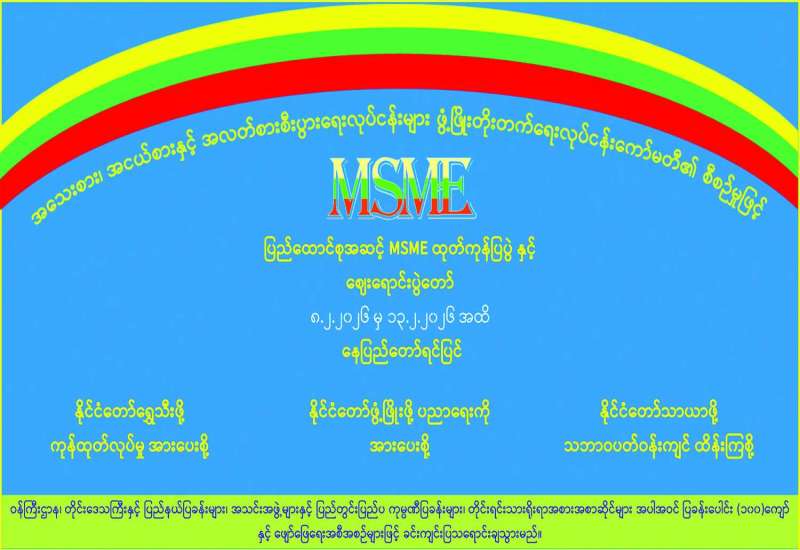 ပြည်ထောင်စုအဆင့် MSME ထုတ်ကုန်ပြပွဲနှင့် ဈေးရောင်းပွဲတော်