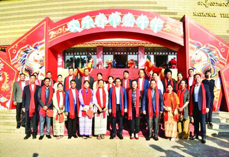 တရုတ်ပြည်သူ့သမ္မတနိုင်ငံ၏ နှစ်သစ်ကူးအထိမ်းအမှတ် ယဉ်ကျေးမှုဖျော်ဖြေပွဲအခမ်းအနားကို ယနေ့ညနေပိုင်းတွင် ရန်ကုန်မြို့ရှိ အမျိုးသားကဇာတ်ရုံ၌ကျင်းပရာ နိုင်ငံတော်ဝန်ကြီးချုပ် ဦးညိုစောနှင့်ဇနီး တက်ရောက်အားပေးသည်။