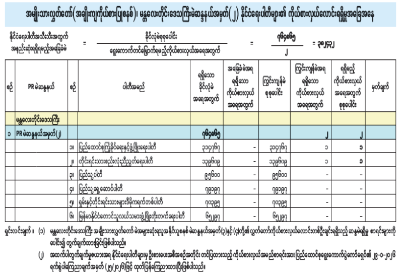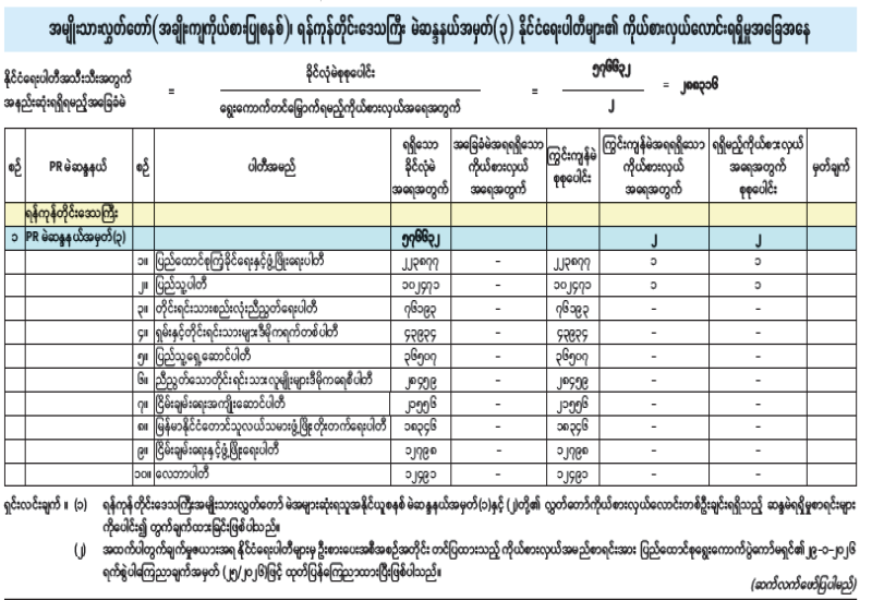 အမျိုးသားလွှတ်တော်(အချိုးကျကိုယ်စားပြုစနစ်)၊ ပဲခူးတိုင်းဒေသကြီးမဲဆန္ဒနယ်အမှတ်(၂) နိုင်ငံရေးပါတီများ၏ ကိုယ်စားလှယ်လောင်းရရှိမှုအခြေအနေ